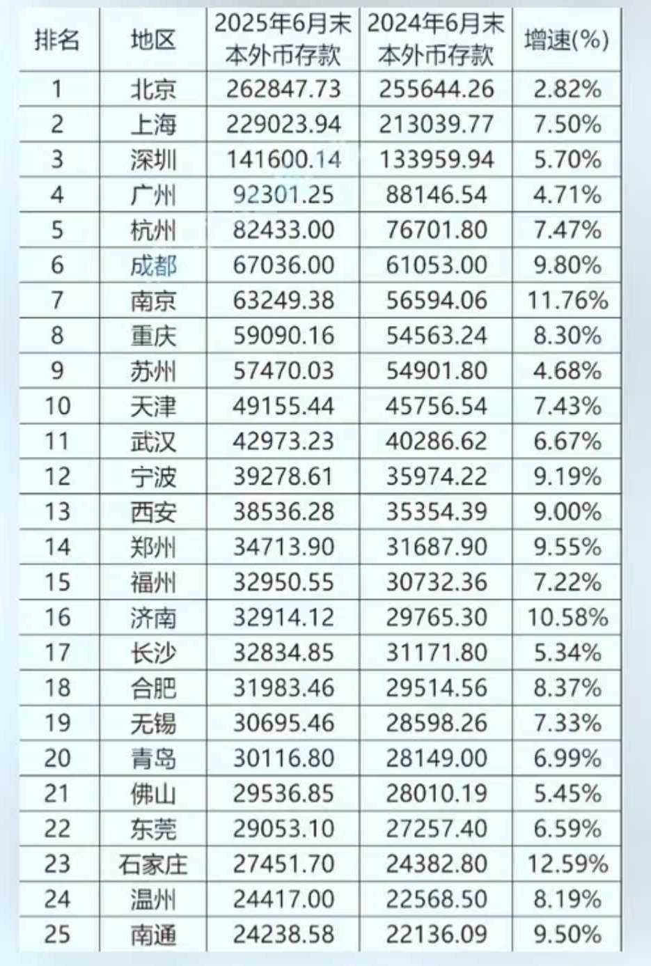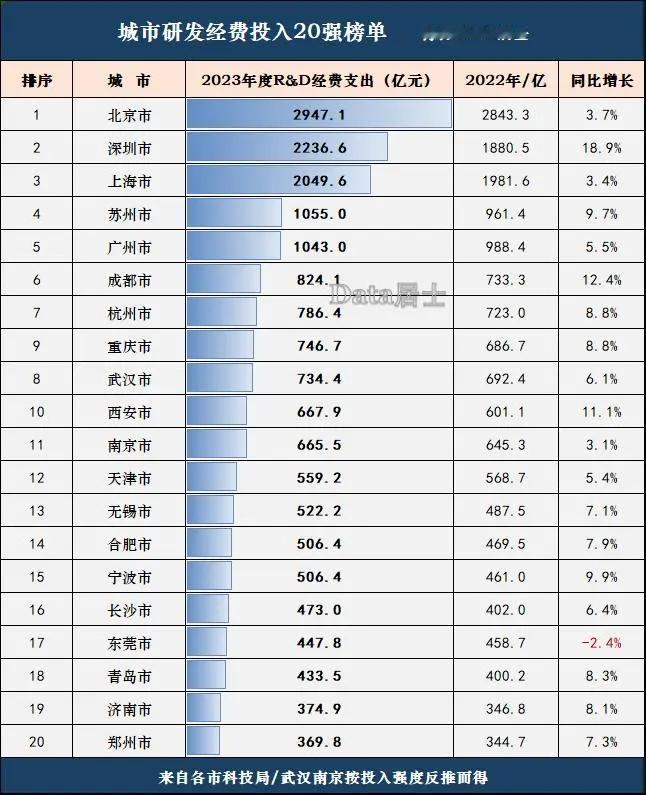 广州的硬实力大概相当于深圳的70%,差距远远大于GDP的差距。 2024年,深圳、广州GDP分别是36802亿、31032亿,广州相当于深圳的84.32%。我总觉得广州真实实力到不了深圳的84.32%,大约只有70%。因为除了GDP数量比较靠近之外,广深各种经济数据都差距巨大。 经济的主体是企业,企业的主体是上市公司。但凡企业做到一定规模,能上市基本都会上市,坚决不上市的都是个别。我们可以从上市公司数量来看一个城市的真实经济实力。截至2025年8月,深圳上市公司有574家,市值51255亿,广州有上市公司237家,市值6059亿,广州这两项数据分别相当于深圳的41.29%、11.82%。两者差距巨大。 如果说上市公司代表的当下,专精特新小巨人就代表的是未来。这个数据广深也差距巨大,说明广深发展潜力也差距巨大,深圳发展潜力也远大于广州。截至2024年12月31日,深圳有国家级专精特新小巨人企业1016家,广州仅有335家,广州仅有深圳的三分之一。依然差距巨大。 同时,从上市公司数量和专精特新小巨人企业数量可以看出,广州本土优质企业严重缺乏,广州经济内生动力严重落后于深圳。也就是说,广州经济撑起那么大规模,靠的是国资、外资、外地企业地区总部,更加依赖虹吸,对外辐射力相对较弱。 另外,可以折射广州发展潜力的是研发投入。2023年,深圳研发投入2236.6亿元,广州仅有1043亿,后者不及前者一半。没有钱投入,怎么搞创新,没有创新,怎么搞高新科技企业,没有高新科技企业,怎么搞产业转型升级?广州研发投入强度不仅远不如深圳,甚至不如东莞。为什么广州现在深陷产业转型升级泥潭,就是因为多年来研发投入强度不够。 网上有专家认为,本外币存款余额,相对于GDP数据,更能反应一个城市的经济实力。因为GDP是考核指标,更有动力往大报。2025年6月末,深圳本外币存款161400亿元,广州92301亿元,广州仅相当于深圳的57.19%。 财政收入也能在一定程度说明问题。2024年深圳地方财政收入3914亿元,广州1954.7亿元,后者相当于前者的49.94%,不到一半。 如果从经济角度看,广州早就只剩下一线城市的架子,里子早就虚了,撑不起来了。从房价调控也可以看出来,去年广州还能跟北上深一起出台政策,但是很快广州就出完招,裸奔了,导致什么?今年八九月份北上深继续出招,广州没招了,装死了。