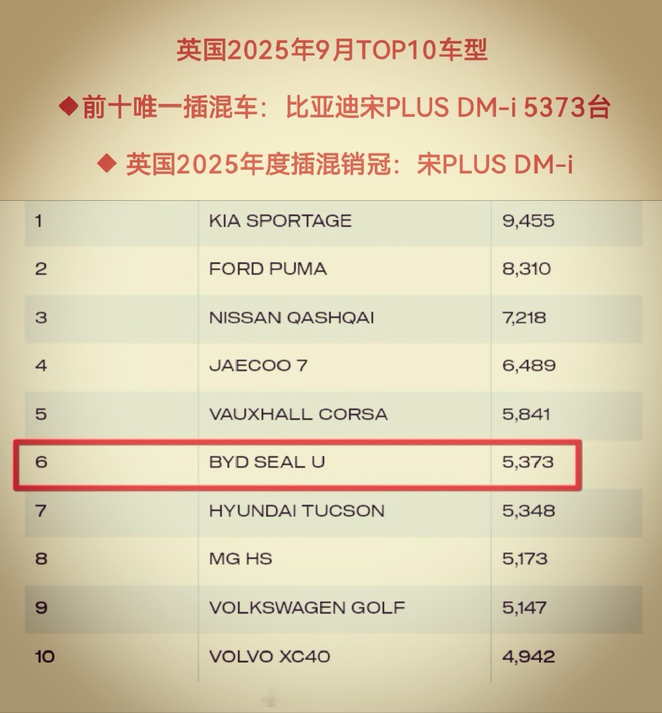 - 单车型首进TOP10:宋PLUS DM-i 5373台,排第⑥