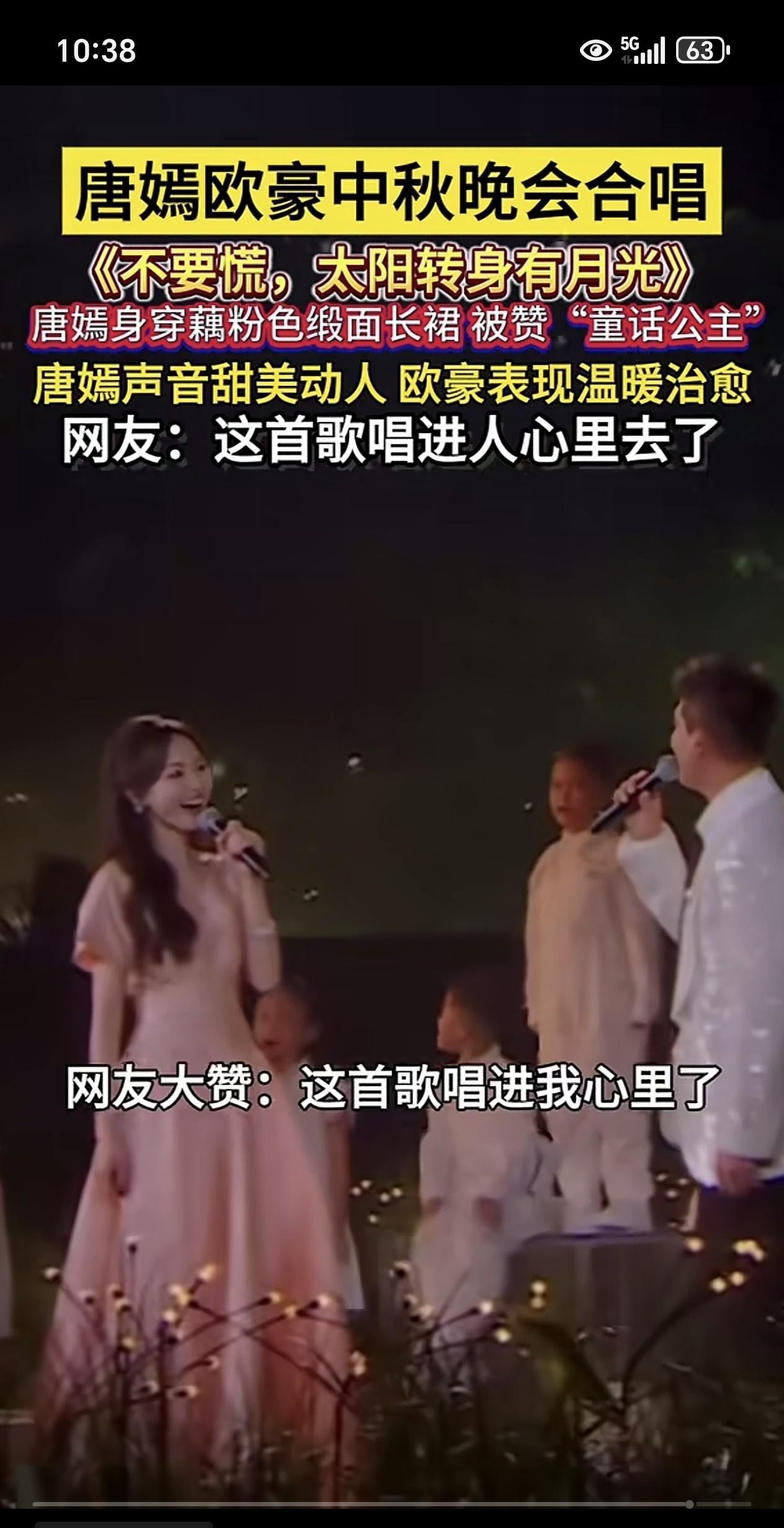不愧是糖糖,去年李现,今年欧豪,唐嫣成了中秋晚会情侣甜歌的代表人物!她的青春期真的好长啊,二十几年如一日的甜美、天真、无忧无虑,让人羡慕不已。去年那首《若是月亮还没来》,她笑盈盈地唱:好烦,还没下班,天天加班……观众看了更忧伤了,仿佛她在嘲笑牛马们。 当时李现就真的烦,丧着脸,一点笑容都不给,也不和唐嫣对视。欧豪就比较大方,和唐嫣笑脸相迎,唱《不要慌太阳下山有月光》。
