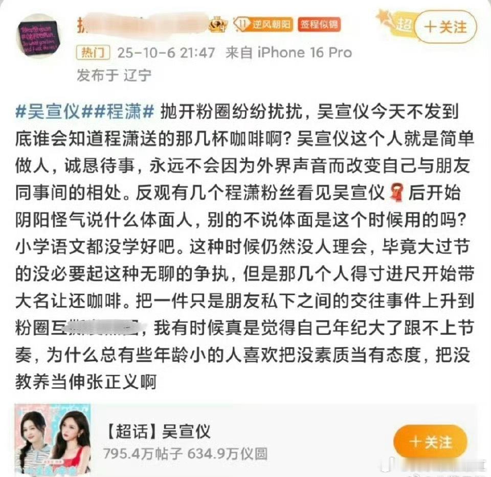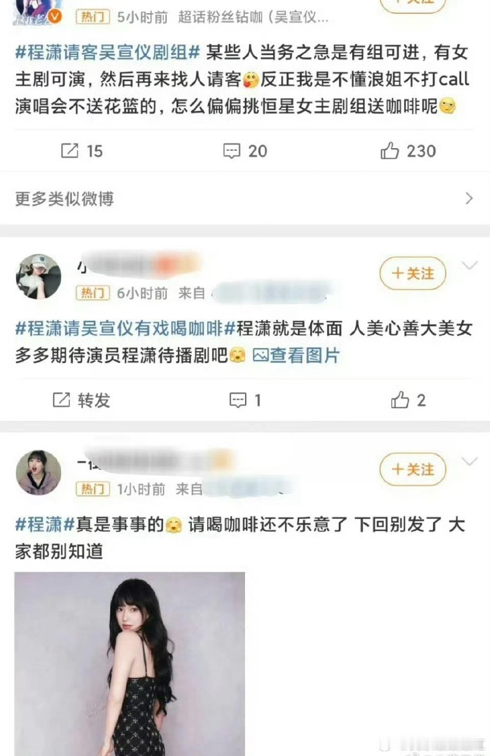 吴宣仪程潇粉丝交流起来了[思考]起因好像是因为程潇请吴宣仪剧组喝奶茶