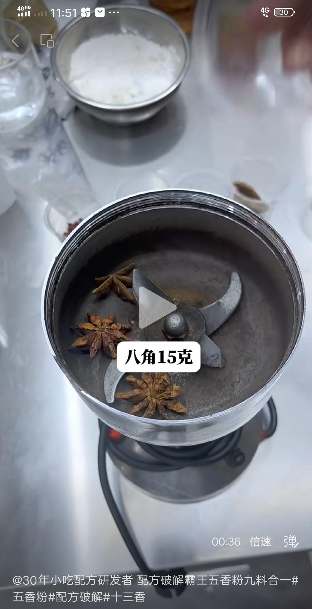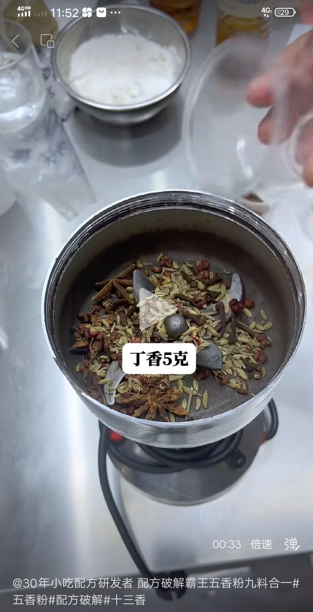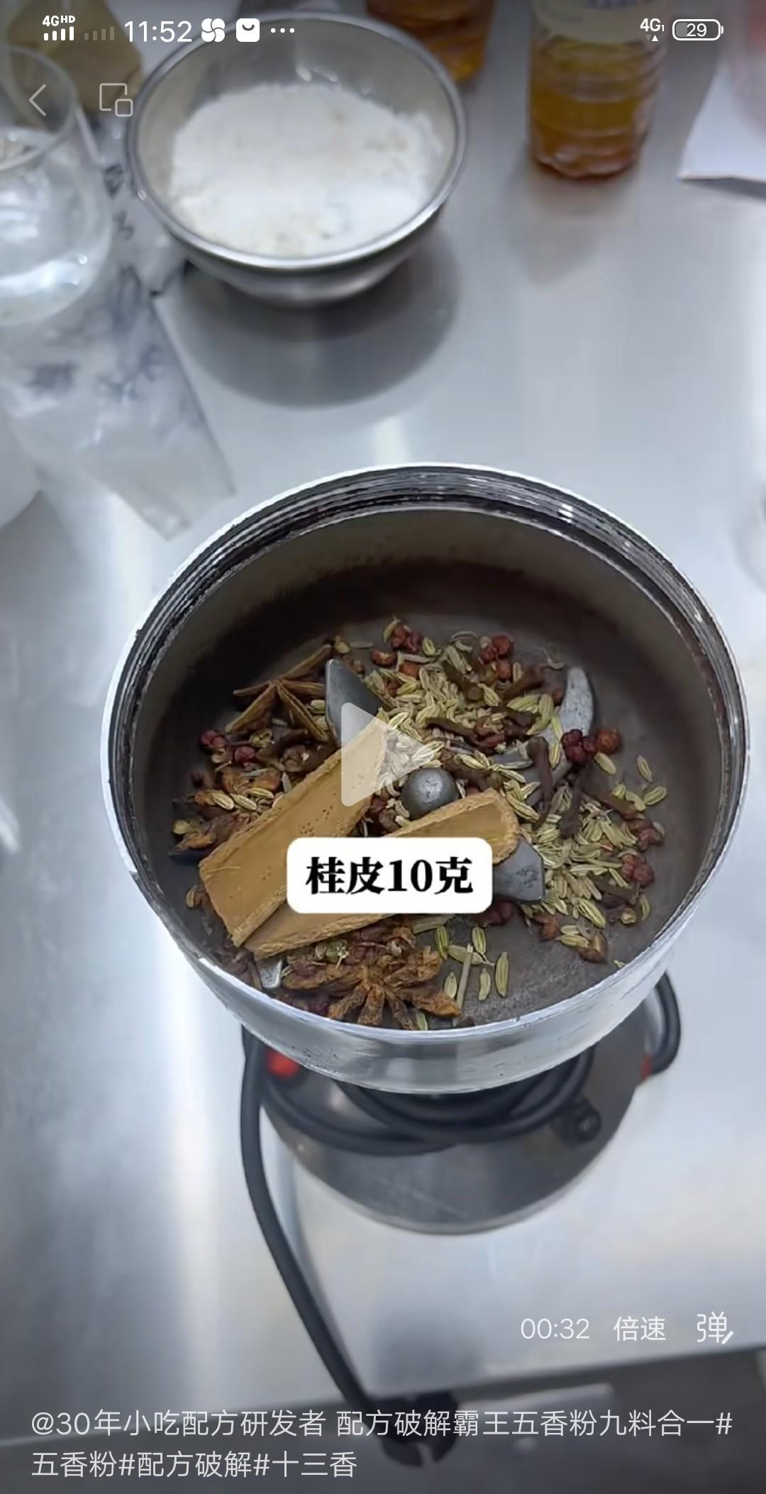 花椒20克, 肉味头香王10克 小茴香15克, 丁香5克、 桂皮10克, 焦香去腥王20克、 八角15克, 云面大壳50克,