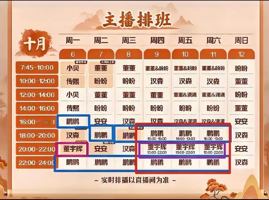 胡鹏鹏从泰国旅游回来拉磨啦!这周连续6天夜班,最期待的是和他宇辉9-11号三天六次的交接班,他们俩每次交接班都会搞笑不断。 胡鹏鹏前期玩的有多爽,现在拉磨拉的就有多爽呀,每天两班,连续六天。这周看宇辉和胡鹏鹏的朋友们要熬夜咯,不过没关系,这些都可以克服。 董宇辉 胡鹏鹏 与辉同行