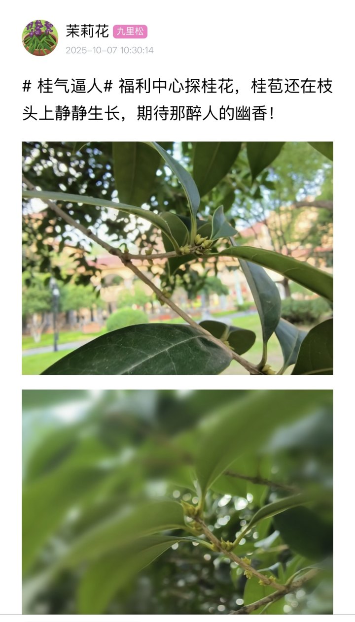 天气一凉,桂花又开始蠢蠢欲“香”了,你家附近的桂花开了吗?欢迎来橙友圈#天气小姐姐#话题下,晒一晒你身边的“桂”气值,上传你拍到的桂花(每帖不少于三张)并带上坐标,记得备注#桂气逼人#标签,我们特别准备了外婆家百元餐券作为奖品。