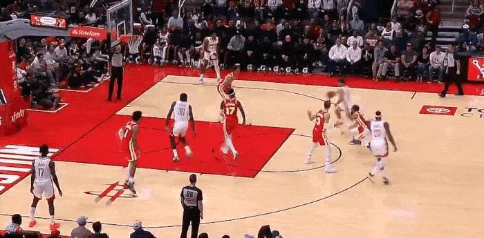 篮更准了!阿门-汤普森底角空位接球,三分出手稳稳命中! NBA季前赛,火箭对阵老