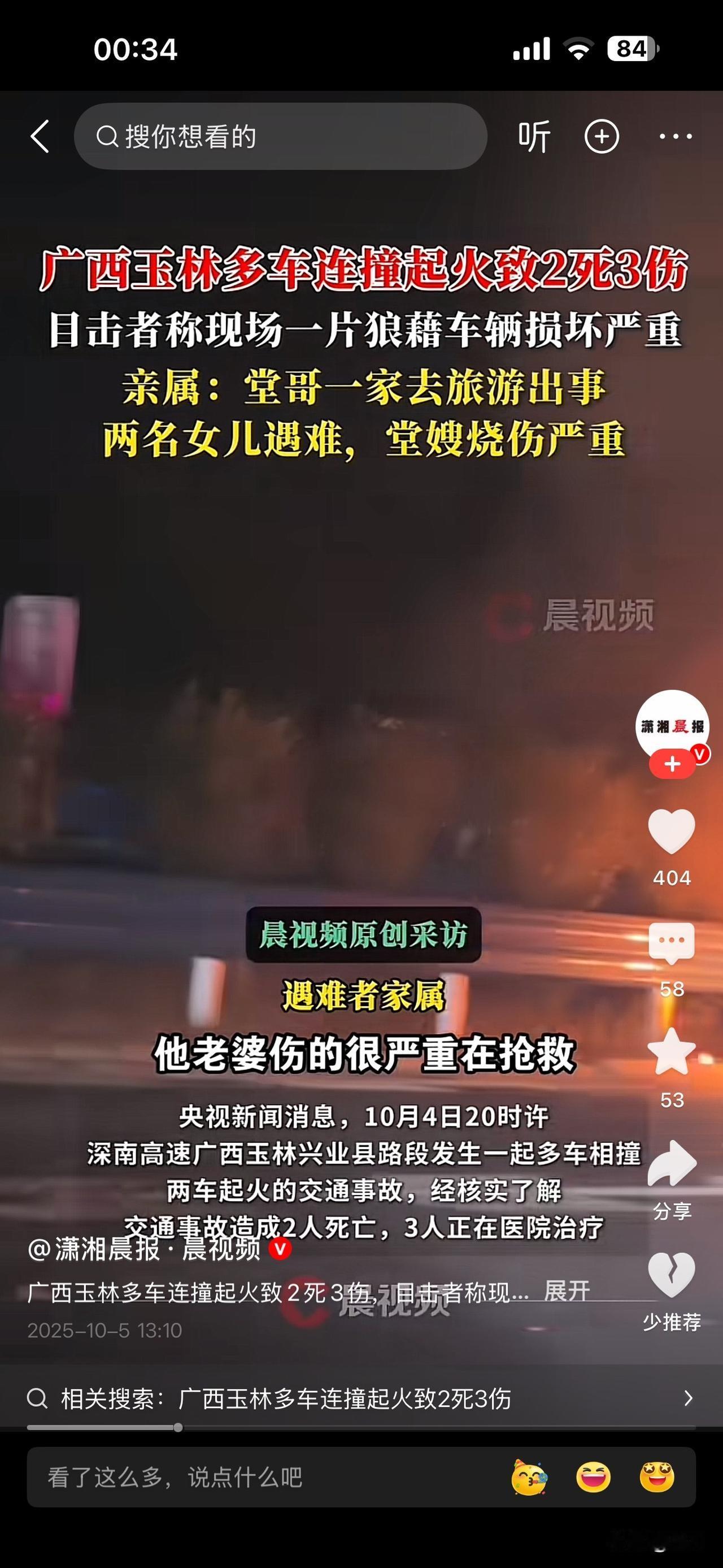 小编发现,近期广西出现连环车祸。亲属:堂哥一家旅游出事,2名女儿遇难,堂嫂烧伤严重。目前正在紧急救援中。