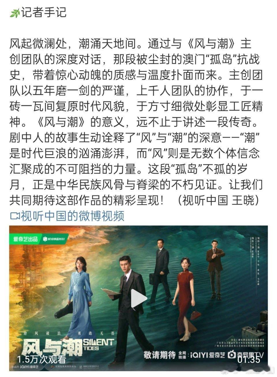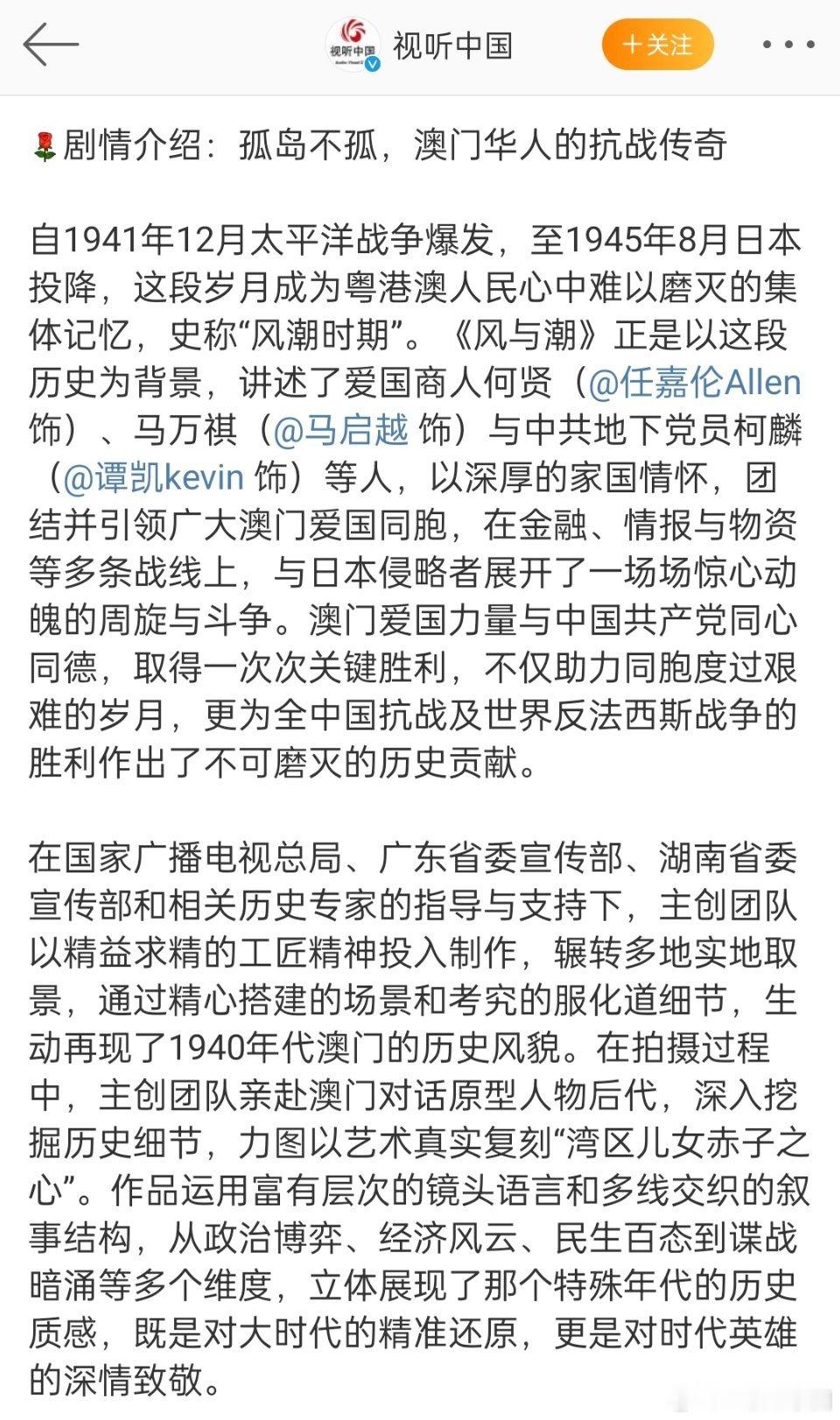 视听中国特别策划--专访《风与潮》主创!燥侯这部抗战胜利80周年重点剧目[憧憬]