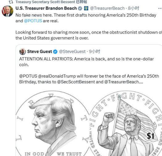 美国或将发行印有特朗普头像的1美元硬币,初稿已曝光?其实,美国政治正在经历一场符号体系置换。国家符号被转化为个人崇拜工具,这一过程正在货币、军事、命名等多个维度同步展开。 最近,美国财政部被曝正在考虑铸造一枚面值1美元的硬币,两面均印有特朗普肖像,纪念美国明年建国250周年。这并非假新闻,美国财政部已证实确有其事。 从初稿来看,硬币一面是特朗普侧面头像,上书“自由”和“我们信仰上帝”,还有1776年和2026年这两个年份。另一面是特朗普握紧拳头,眺望远方,与他遇刺未遂后做出的姿势几乎一样,上面还写着“战斗,战斗,战斗”,这是他遇袭之后向支持者喊出的口号。 这已远非普通的货币设计争议,而是美国政治生态的一场隐喻性地震。货币作为美国国家共识的物化象征,正在被撕裂为两个平行世界:一边是延续百年的制度传统,一边是民粹领袖对政治叙事的重新定义。 美国历史上唯一一次例外发生在100年前的1925年,国会当时通过了一项特别法案,美国独立150周年纪念币立法,授权财政部长审批纪念币图案。使得当时在任且在世的美国总统柯立芝和华盛顿一起上了50美分纪念币。 当时,这一设计被批“公然违法”。因为根据《美国法典》第31编第5112条,任何流通货币都不得使用在世总统肖像,逝世后需至少间隔两年才可出现在钱币上。 这种“逝者才可上币”的规定源于1866年《铸币法案》和1946年《纪念币法案》,旨在防止国家象征被政治人物私人化,体现了对权力神圣性的审慎。因为只有当历史的尘埃落定,人物功过才能得到相对公正的评价。 但特朗普团队却以“250周年纪念币”的名义打擦边球,通过两种策略绕过了限制:一是将特朗普头像置于硬币正面,而非法律严格限制的背面。二是背面采用“动态场景”,而非静态半身像,以规避“头肩肖像”的法律定义。 无论国会是否批准该提案,特朗普都是赢家。如果提案被阻,MAGA派将视之为建制派对特朗普的迫害,可以极大缓解特朗普近期在乌克兰问题上立场转变而引发的内部压力。如果提案通过,就意味着打破政治禁忌的胜利。 其实,硬币头像之争的本质是关于“谁能代表美国”的符号战争。货币图案是一个国家的基本共识,当这个共识被活着的政治人物占据时,货币就从国家信物沦为了个人政治宣传工具。 但货币之争仅仅只是冰山一角,特朗普团队及共和党人正在系统性献媚,推动其个人崇拜。在美国国会,一系列以特朗普命名的法案正在密集推出,让人眼花缭乱。 黄金时代2025法案已提交国会金融服务委员会审议,要求2028年12月31日以后印刷的100美元纸币上,必须印有特朗普头像,用以纪念他带领美国民众走进新黄金时代所作的贡献。 要求将华盛顿杜勒斯国际机场更名为“唐纳德·J·特朗普国际机场”的提案,已提交审议。 要求将特朗普生日6月14日定为美国国家假日的法案,已进入立法程序。 要求将华盛顿都会区交通管理局更名为“华盛顿都会区更便捷交通管理局”,并将地铁更名为“特朗普列车”的法案,已提交美国国会公路和交通小组委员会审议。 要求约翰·F·肯尼迪表演艺术中心更名为为“唐纳德·J·特朗普表演艺术中心”的让娱乐再次伟大2025法案,已提交审议 军事领域,五角大楼不久前紧急召回美军在全球的高级军事主官,引发全球关注。然而,这场大规模军事将领集结却沦为了一场个人政治秀,仅仅只是宣布特朗普将“国防部”改名为“战争部”,并让将领们聆听特朗普讲话。 如果以上法案都能通过,届时美国人就可以从特朗普机场出来,花特朗普元,坐特朗普列车回家,过特朗普节,去特朗普艺术中心看特朗普样板戏。意不意外,惊不惊喜? 其实,当政治从实质治理转向符号斗争,民主就开始走向民粹的深渊。目前,一场打造“特朗普王国”的运动正在制度框架内有序推进。所以,他们不是在铸币,而是在铸造个人崇拜的圣像。 但估计把特朗普头像铸在1美元硬币上,让美国硬币变成“川大头”或“特大头”的概率非常之小。最为稳妥的办法应该是把特朗普那只“流血的耳朵”铸上去。 首先耳朵可以完美解决头像不能上币的问题;其次那是一只被打过洞,又听过上帝耳语的耳朵;再次那只耳朵早就被其支持者神化为不屈不挠的精神图腾。 其实,在美国建国250周年之际,特朗普头像上硬币的法案,就像那只流血的耳朵,既是真实的创伤印记,又是政治戏剧的道具。但硬币虽小,却映照出一个时代的困惑:当政治从务实治理转向符号消费,当国家共识被个人崇拜侵蚀,美式民主正在走向危险的歧路。 在掌控两院的情况下,特朗普团队或许可以通过法律擦边,为在世美国总统打破铸币传统。然而,法律擦边的真正危险并不在于违法,而在于它消解了法律的神圣性。当立法者、行政者和司法者成为谄媚者,那三权分立就会变成三权献媚!