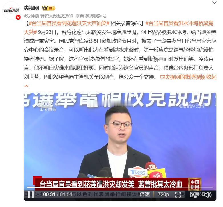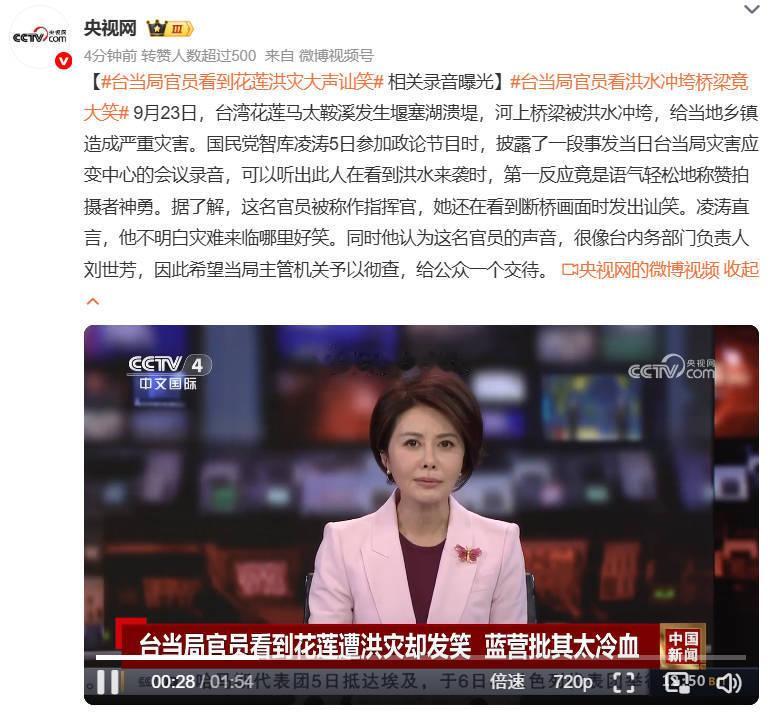 台当局官员看洪水冲垮桥梁竟大笑 ,热点评论
