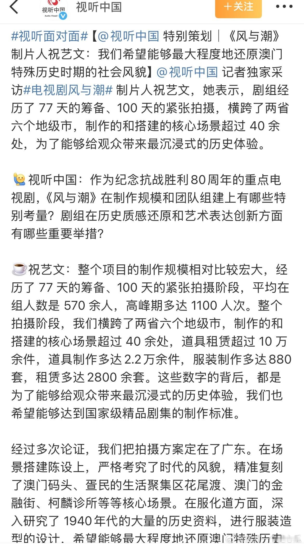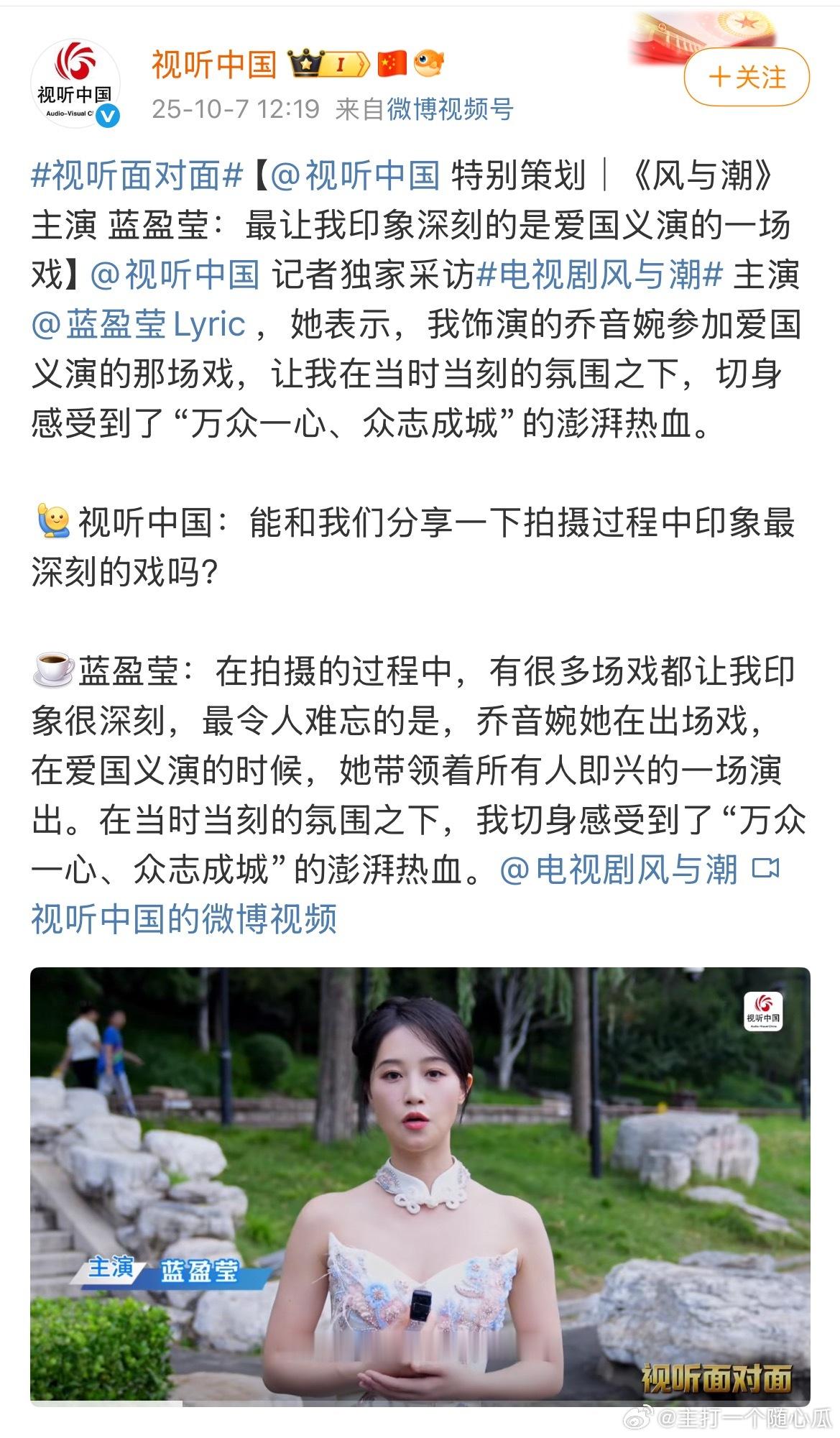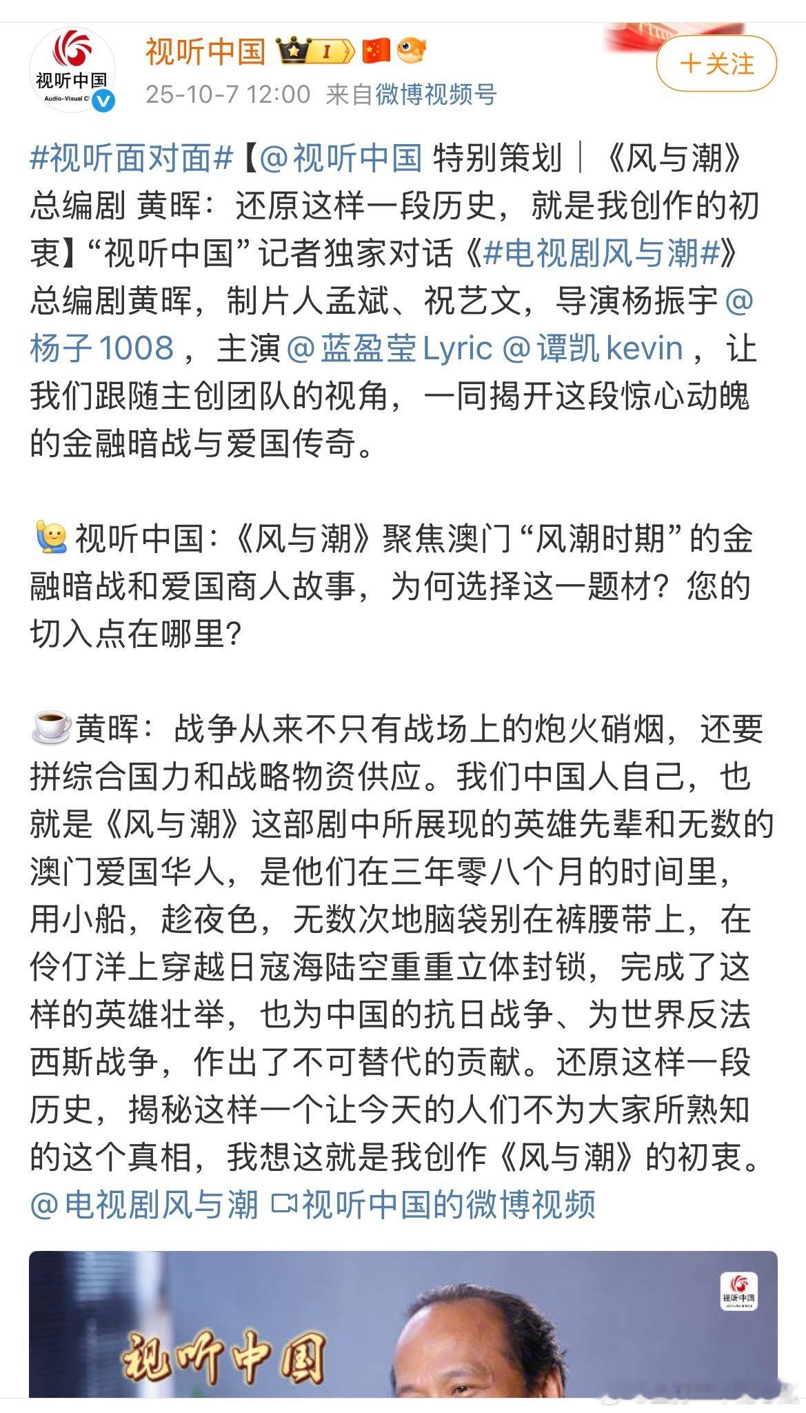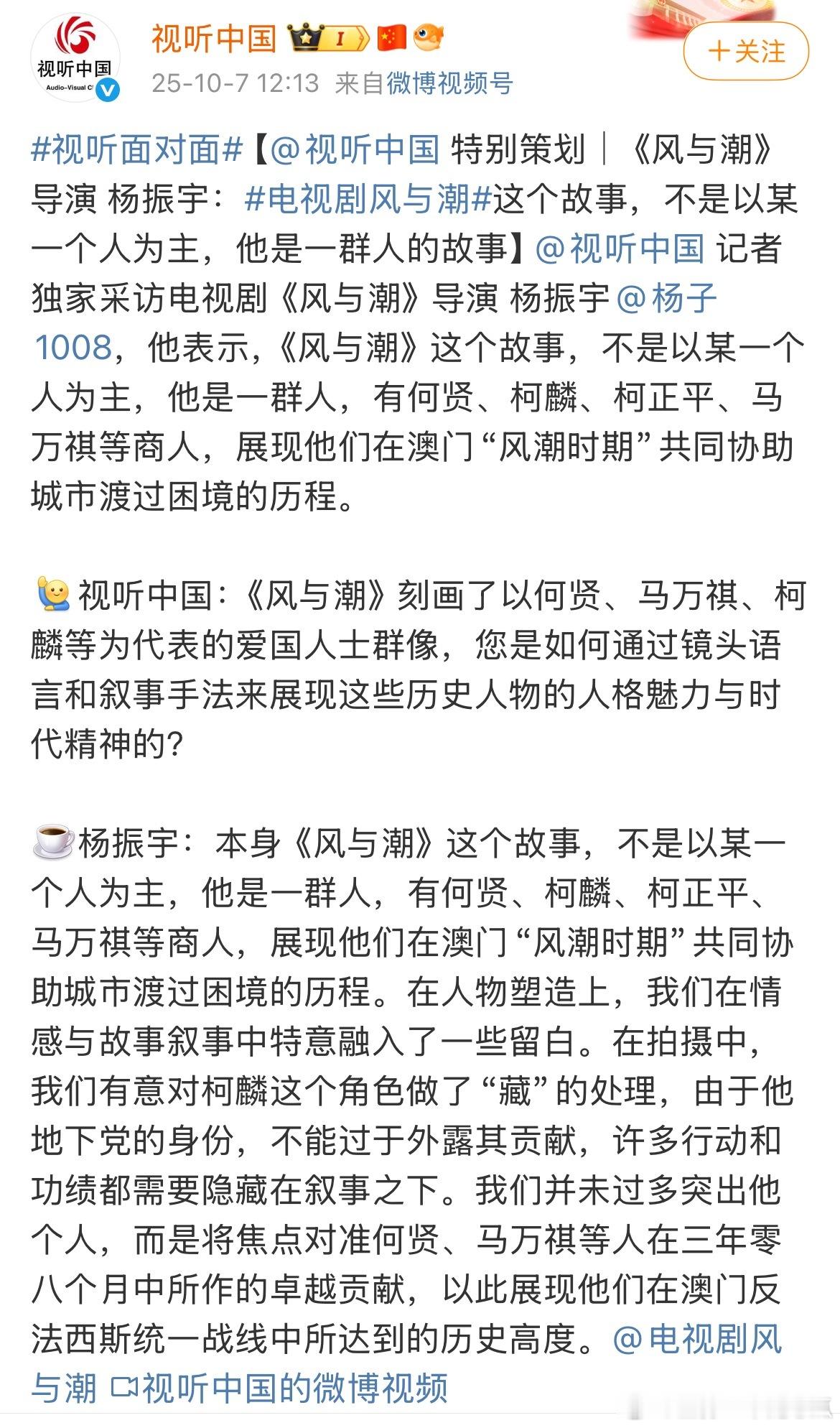 任嘉伦《风与潮》特别策划,视听中国连发10条博文,总台重点献礼大片!