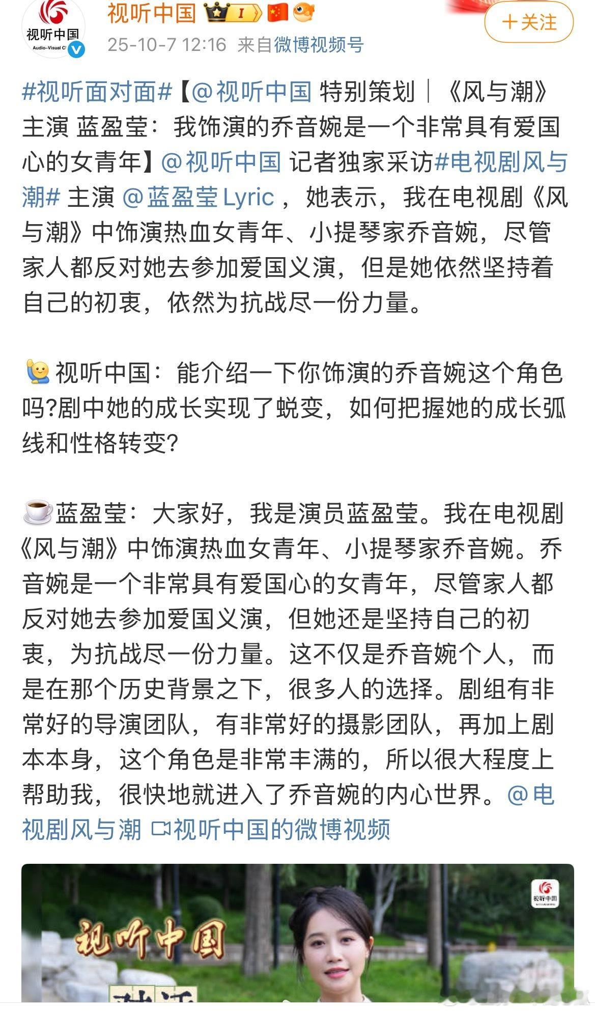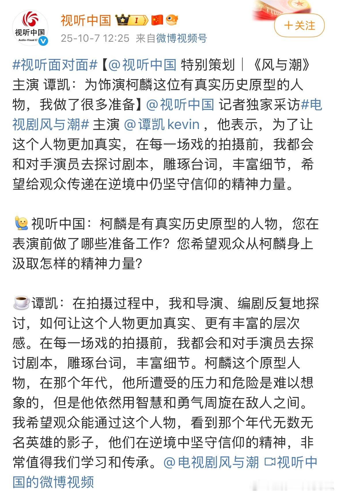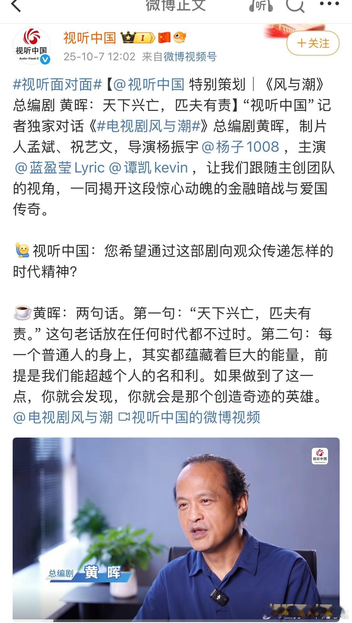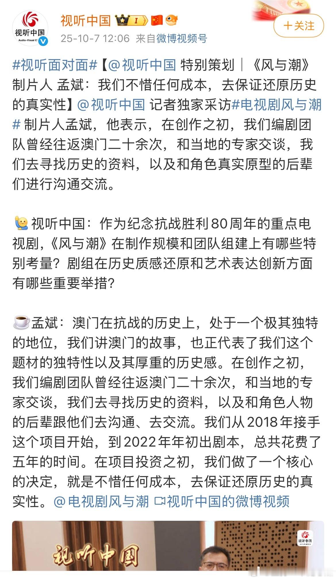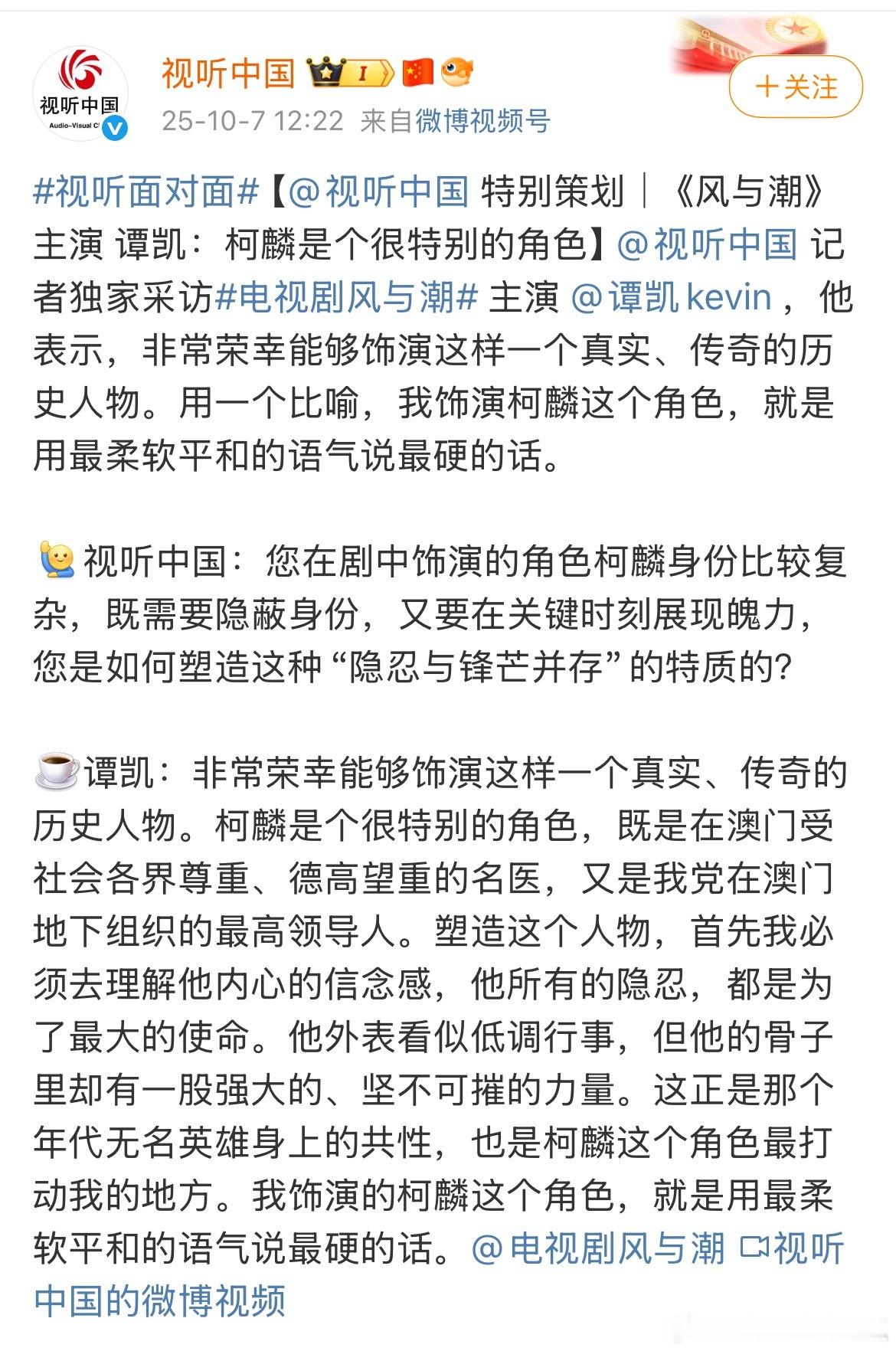 任嘉伦《风与潮》特别策划,视听中国连发10条博文,总台重点献礼大片!