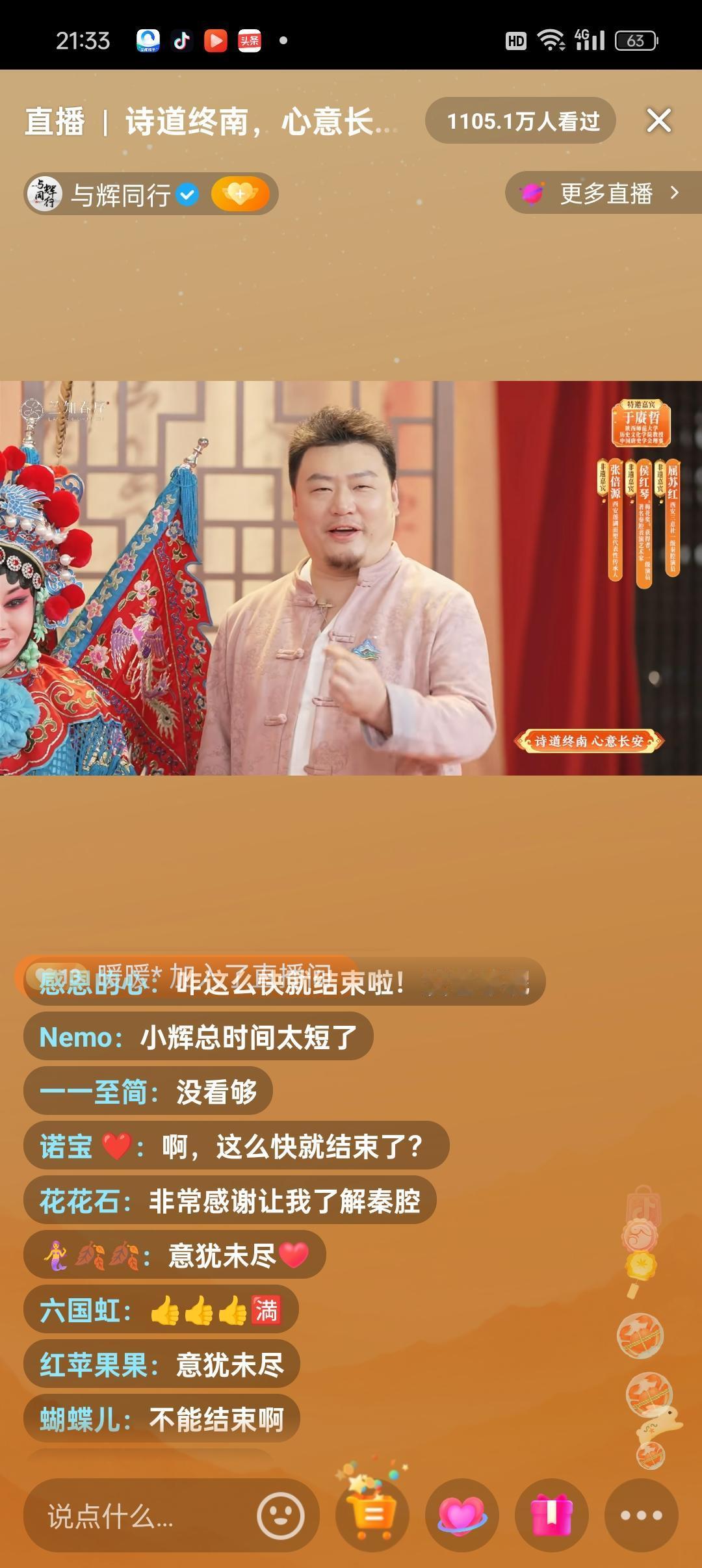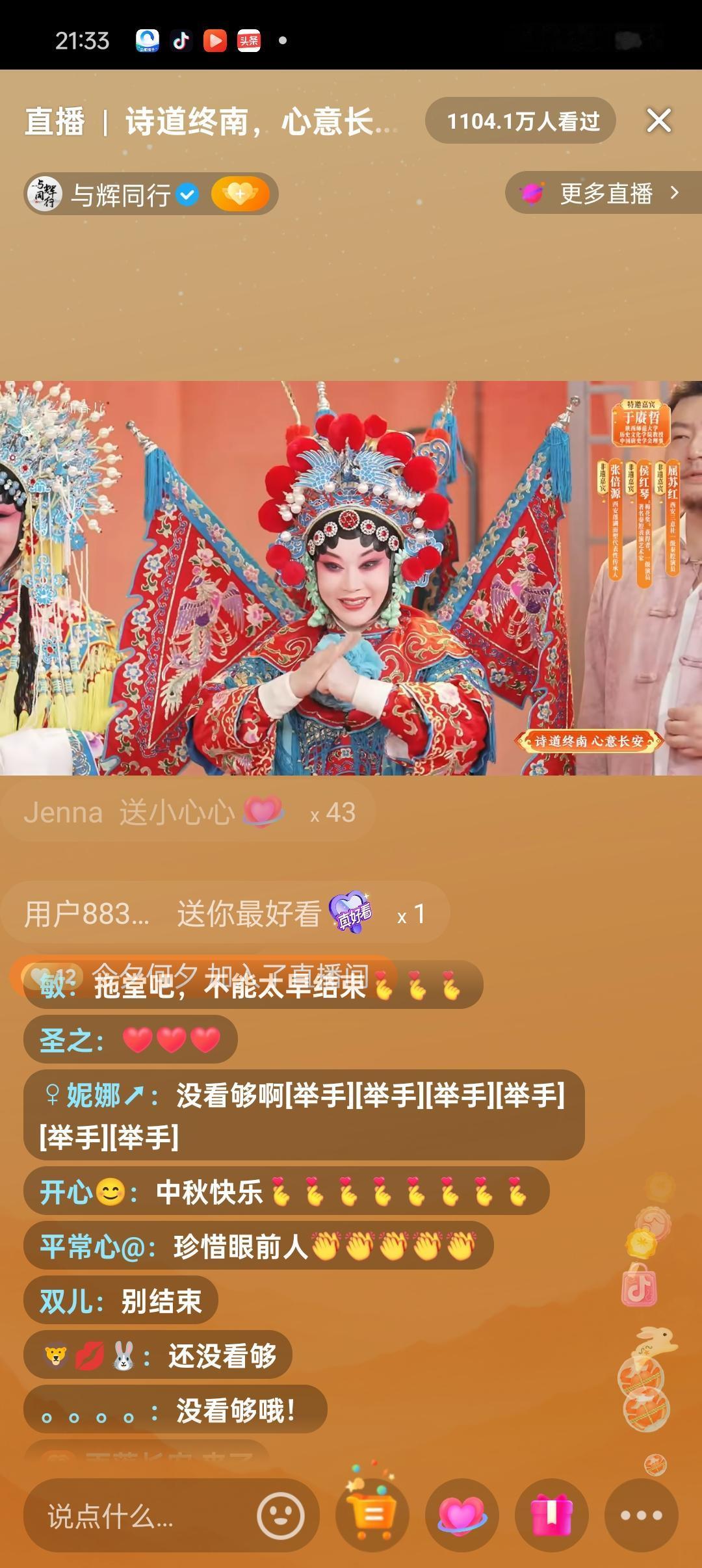 这次恐怕连张艺谋都心服口服,董宇辉作为总导演的西安中秋晚会出手即巅峰,1个半小时总观看人次达到了1137万,评论区直呼“没看够”、“恨太短了”。 宇辉 是这个时期现象级的存在 是全能型人才 能当打工人又能当总裁 既宠粉丝又爱家乡 有一项不咋地——翠花在哪。 长江后浪推前浪,一辈更比一辈强,董宇辉现在风头盖过了土木工程博士相宜(张婷)。 要评最佳节目,必须是方大师弹奏《春江花月夜》,太唯美,太震撼了,朗诵老师也很棒