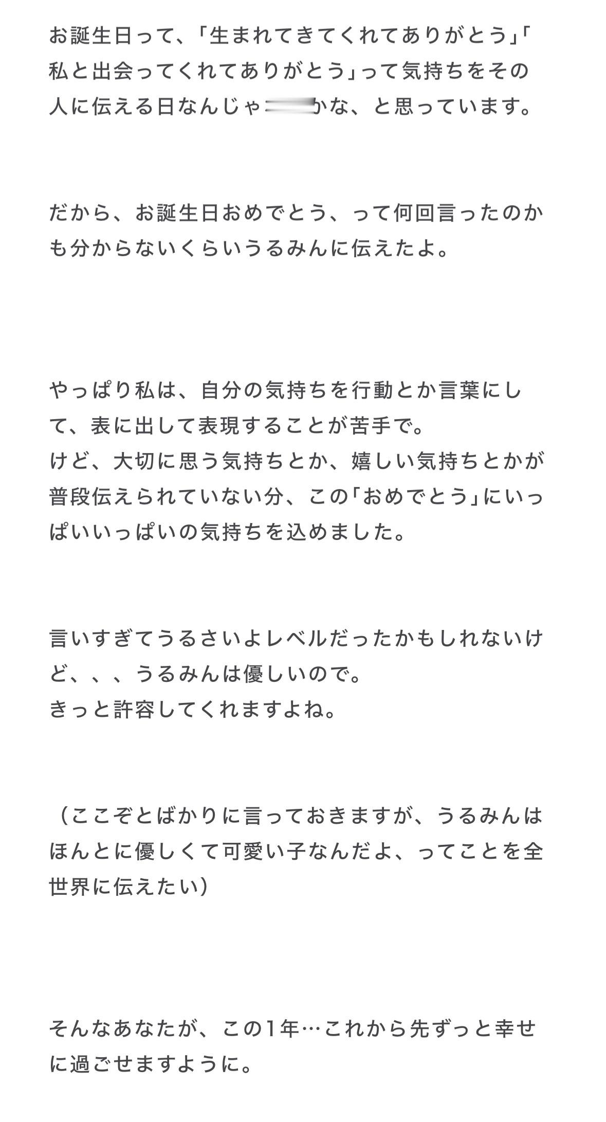 けど、大切に思う気持ちとか、嬉しい気持ちとかが普段伝えられていない分、この「おめでとう」にいっぱいいっぱいの気持ちを込めました。」