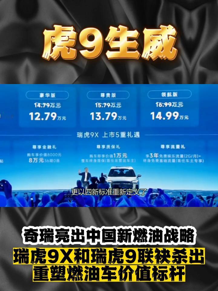 奇瑞亮出中国新燃油战略,瑞虎9X和瑞虎9联袂杀出,重塑燃油车价值标杆。 在电动化浪潮席卷行业的当下,奇瑞以一场中国新燃油战略发布会展现了其对燃油车市场的深度思考与坚定信心。瑞虎9X与瑞虎9双车的联袂登场,不仅以12.79-16.99万元的价格区间展现出强大竞争力,更以四新标准重新定义了燃油车的技术内涵。 瑞虎9X搭载高通骁龙8255车规级芯片,猎鹰500智能辅助驾驶系统,除了具备高速NOA能力外,还可应对300多种泊车场景。安全性能是瑞虎9X的另一大亮点,采用全球五星安全标准设计,高强度钢占比达85%的磐石车身结构,博世IPB线控制动系统与7安全气囊构建了全方位的安全防护体系。 空间设计与舒适性配置彰显了对用户需求的深刻理解。车长超过4米8,确保了宽敞的乘坐空间。7人10箱的设计理念让七人出行时都能轻松携带个人行李。车内配备的伯牙之音环绕音响,一键舒躺女王副驾等细节无不体现着对品质的执着追求。 瑞虎9X与瑞虎9的双车战略形成了完美的市场互补。瑞虎9X主打宽体超舒适智慧旗舰,以智能科技为核心卖点。而瑞虎9则凭借192kW最大功率,400N-m峰值扭矩的强劲动力和更多的安全配置,满足对性能有更高要求的用户。 两款车型共同覆盖了12-17万元价格区间的细分市场,通过差异化定位实现了协同效应,为奇瑞在竞争激烈的SUV市场赢得了更多主动权。位列世界五百强增速第一的奇瑞目前已畅销全球120多个国家和地区,每出口5辆中国汽车就有1辆来自奇瑞。瑞虎9X与瑞虎9的推出将进一步巩固奇瑞在全球市场的地位。 瑞虎9X与瑞虎9的双车组合展现了奇瑞对汽车产业的深刻理解和战略定力。在电动化与智能化交织的产业变革期,奇瑞以中国新燃油战略开辟了属于自己的发展道路,也为全球汽车产业的转型提供了富有启示的中国方案。