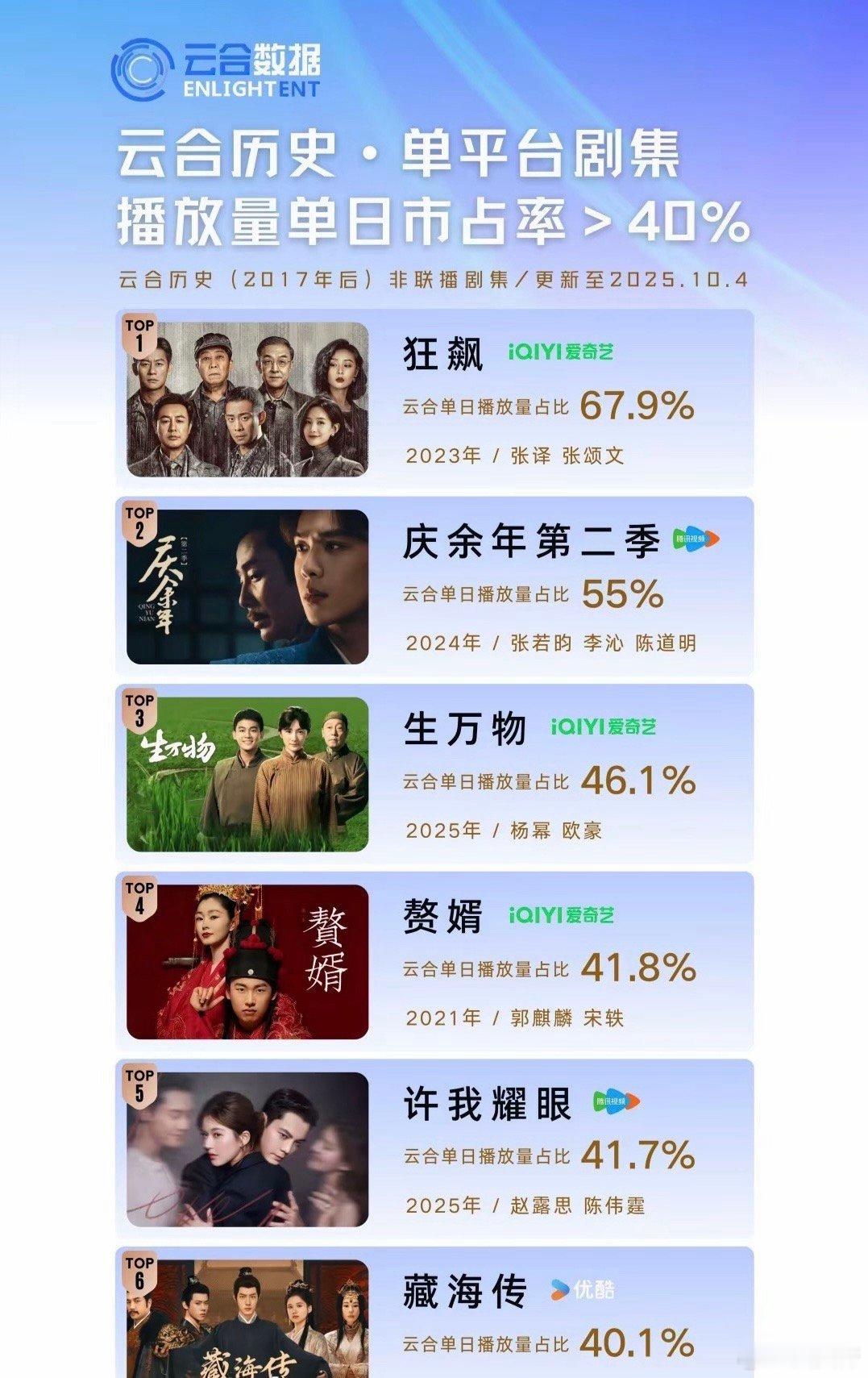 许我耀眼云合占比41.7%,赵露思粉丝可以使劲吹了,市占率上40%历史上就五部剧