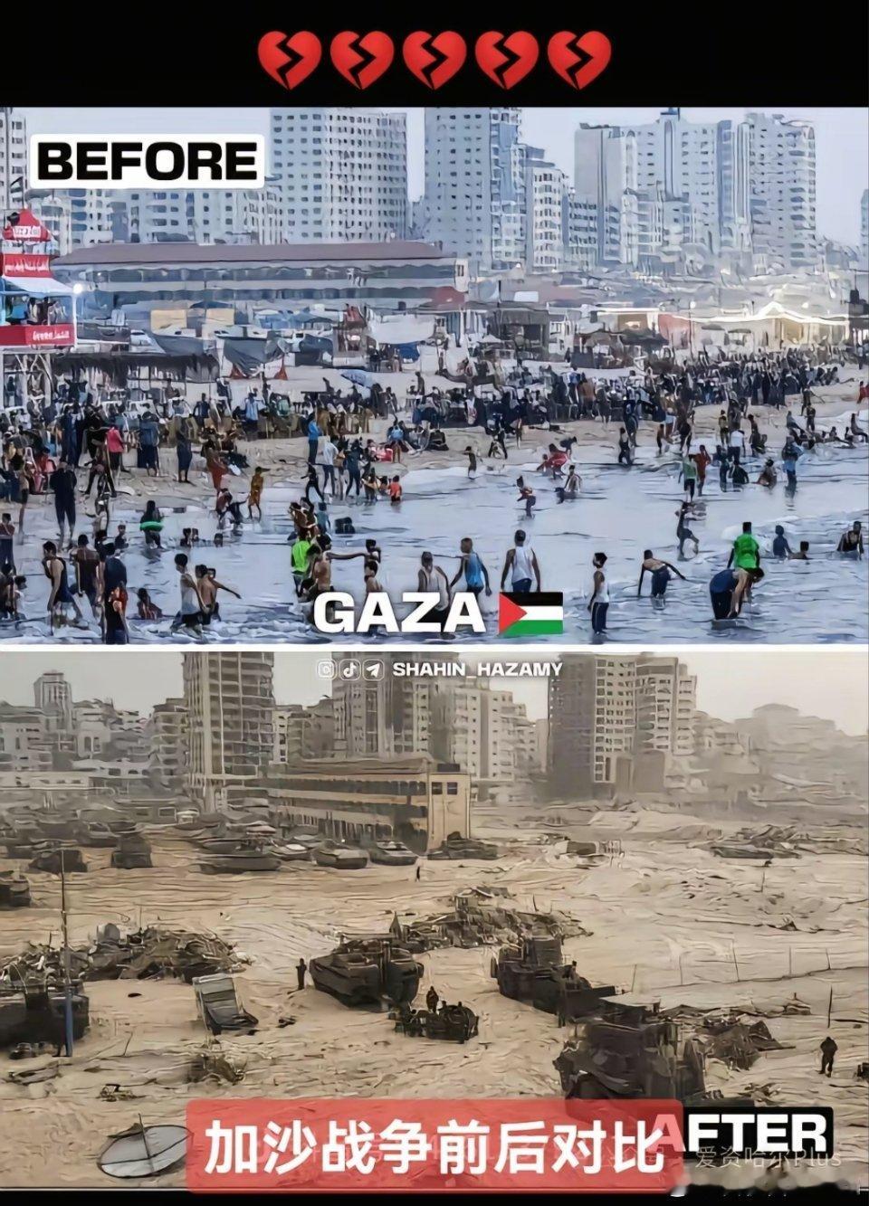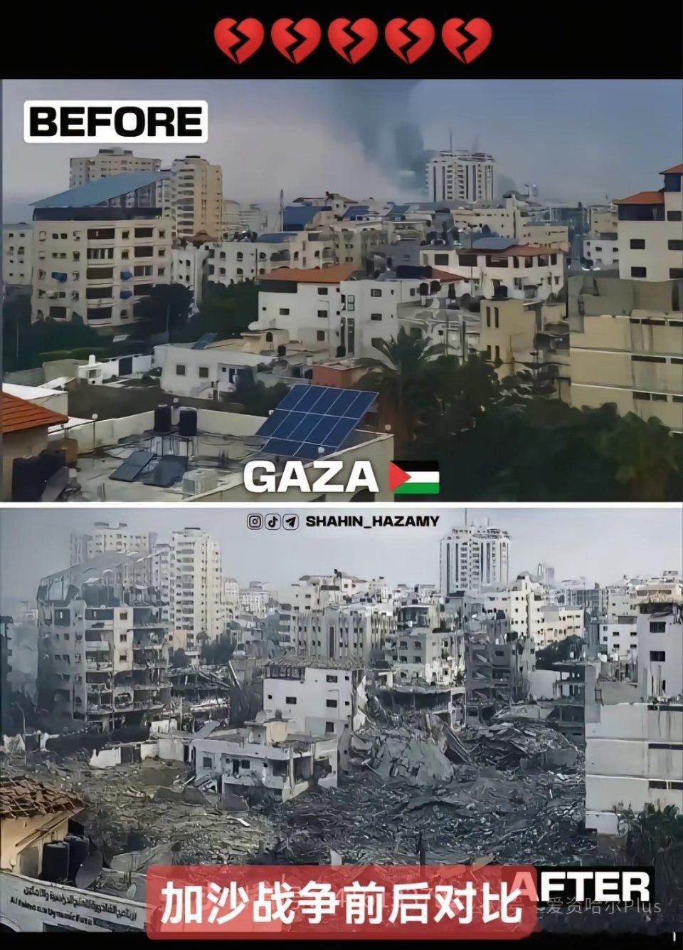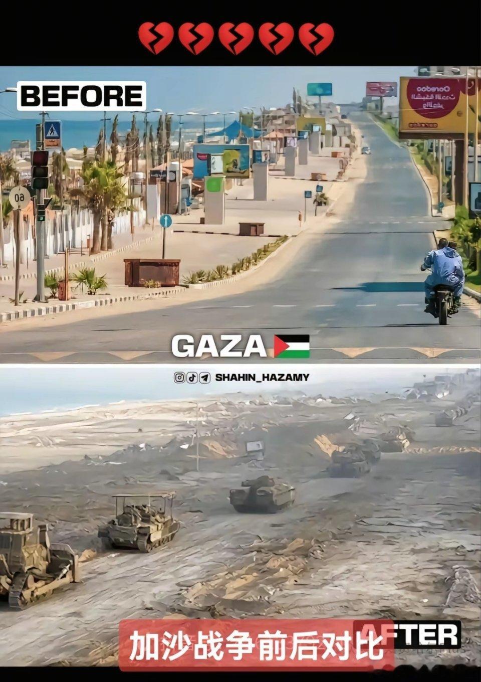 加沙地带前后卫星图对比🔻这是加沙地带的前后对比图,曾经繁华的滨海城市在巴以冲突开始后,变成了一片废墟。热点现场