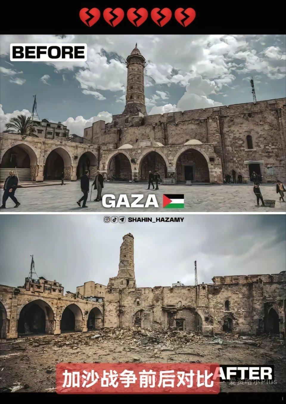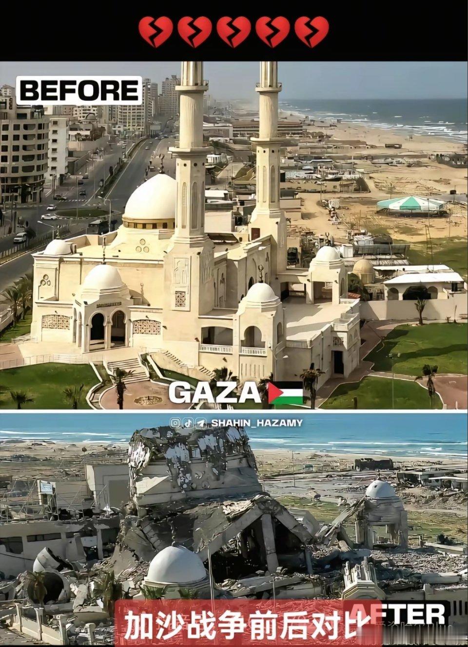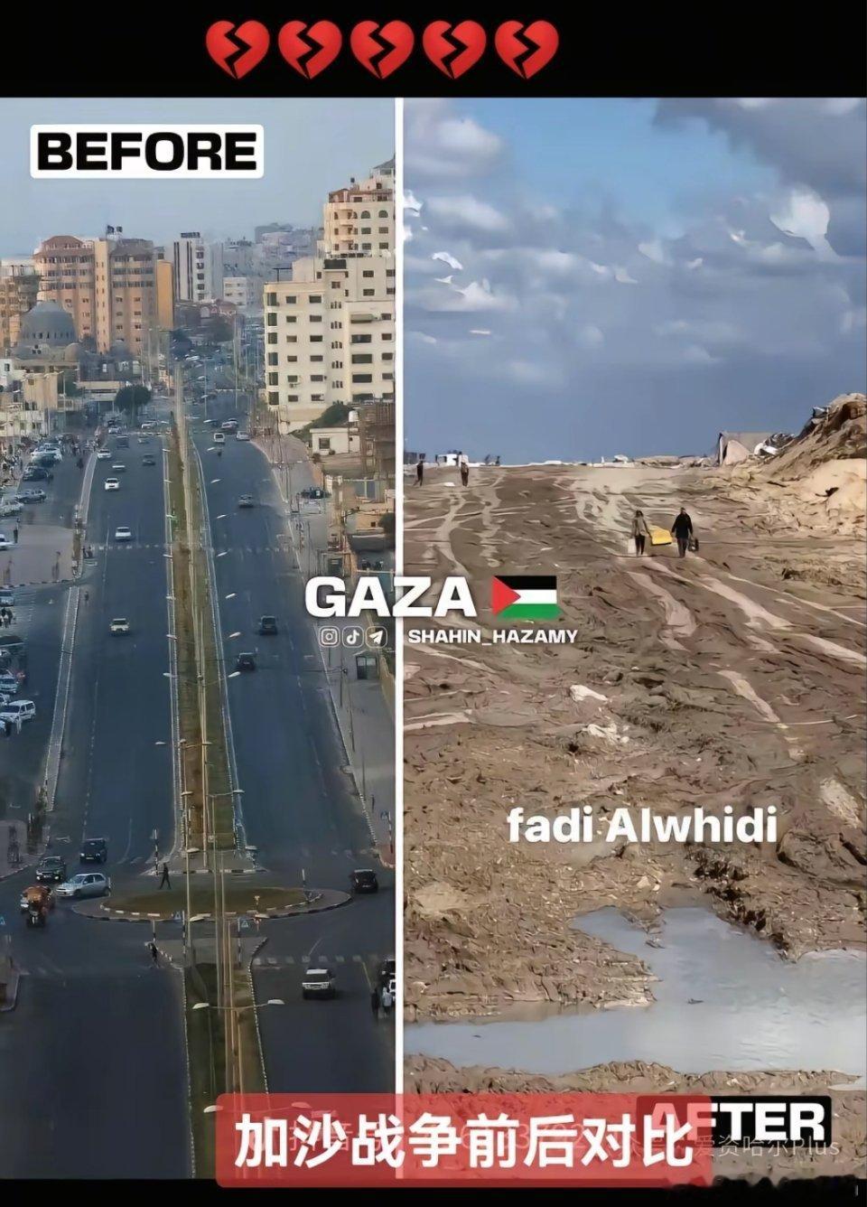 加沙地带前后卫星图对比🔻这是加沙地带的前后对比图,曾经繁华的滨海城市在巴以冲突开始后,变成了一片废墟。热点现场