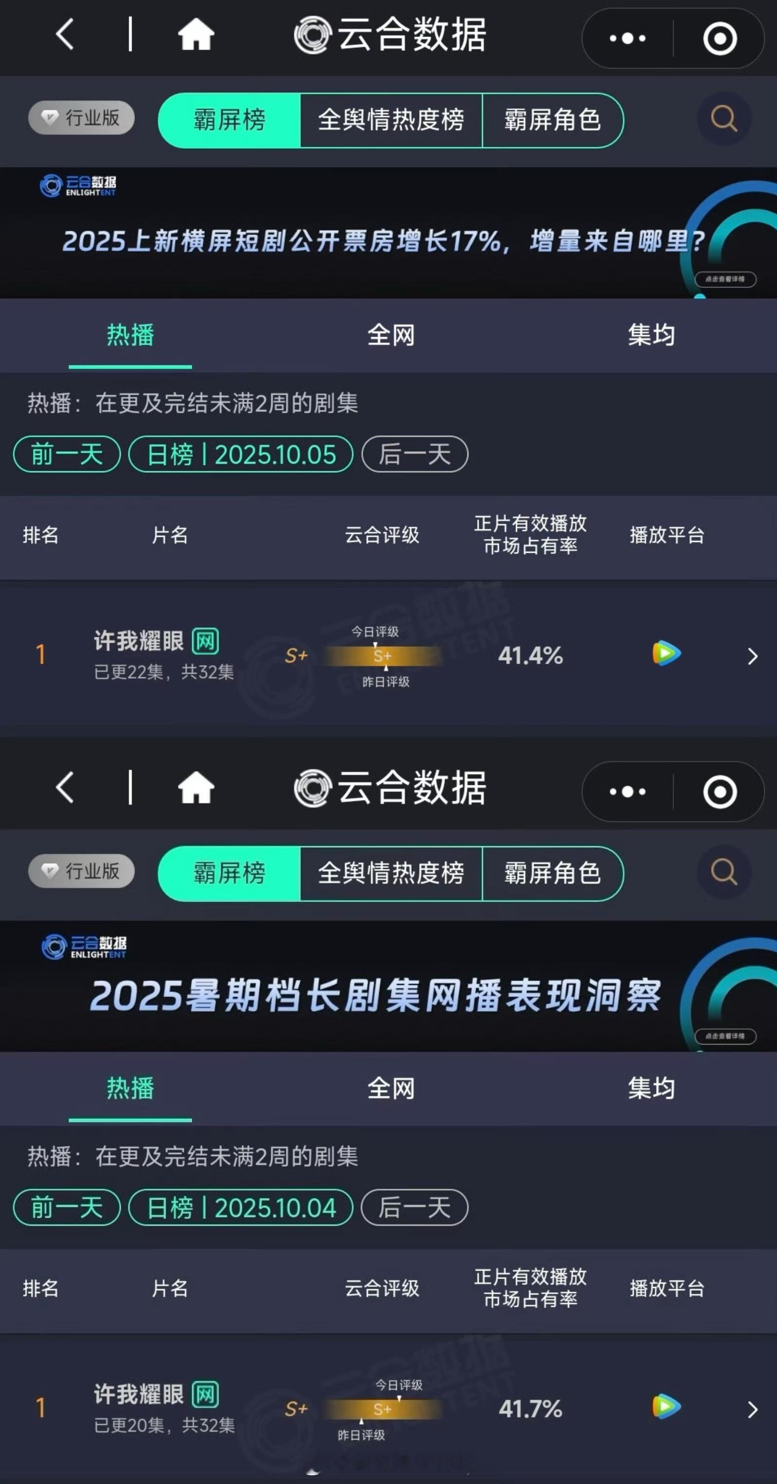 许我耀眼41.1%,连续三天云合破40%👏👏更何况昨天起都是单更了,很厉害了[馋嘴]