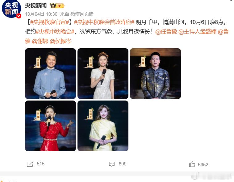 所以就算秋晚也提前录制还宣传造势,公布了节目单,也有一些实力派歌手和明星参加,但热度一般。至于主持人阵容,也远不如央视春晚那么受关注。因为构成基本上差不多,主打是央视国际频道的鲁健和孟盛楠,然后综艺频道的任鲁豫,再结合一些地方的主持人,变化不大,惊喜不多。