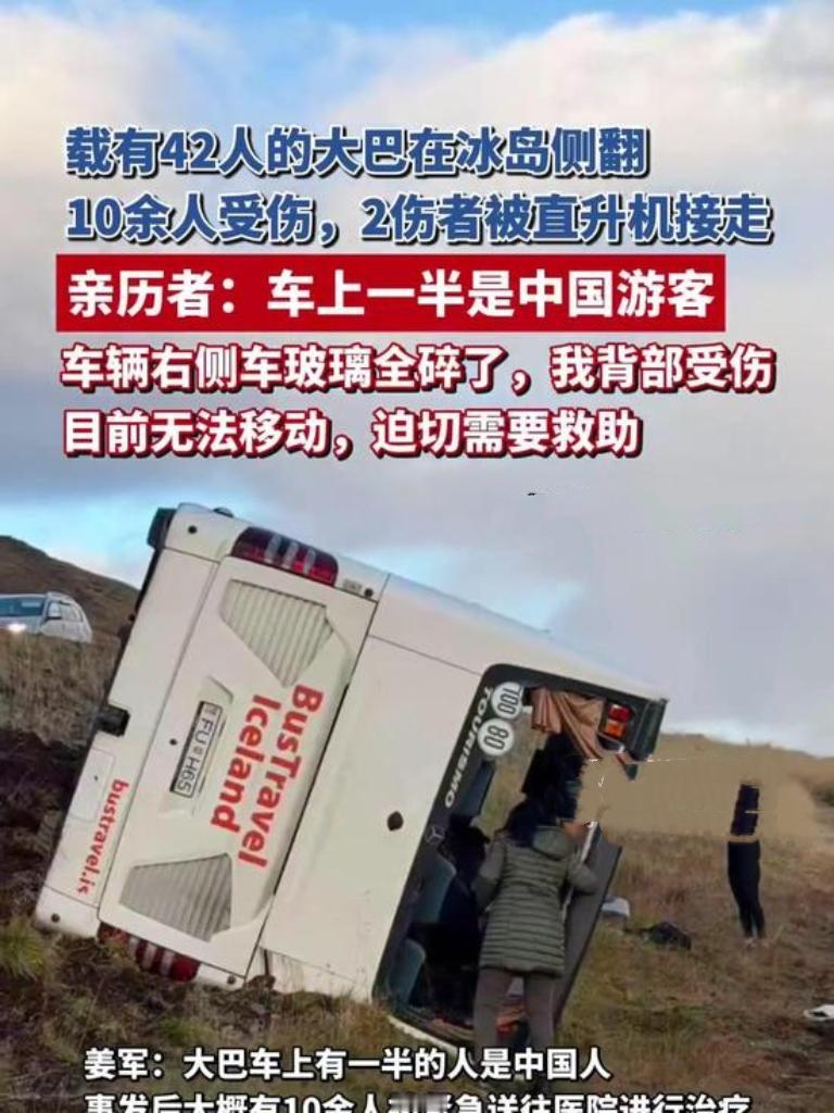 10月6日,冰岛斯奈山半岛发生大巴侧翻事故,车上42名游客中近半数为中国公民。现场视频显示车辆翻倒路基旁,至少10人受伤送医,2人由直升机紧急转运。冰岛冬季路况复杂,你或身边人有过海外旅行惊险经历吗?欢迎分享安全提醒!车辆侧翻 旅游大巴事故 冰岛交通事故 ;