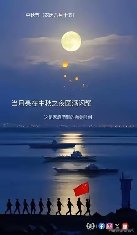 昨天中秋节,解放军发的英文海报很有意思。我们都知道,中秋节英文一般是Mid - Autumn Festival,在英语世界里Moon Festival也常用。我用软件翻译了海报内容,以便大家理解其传达的信息。 这张海报在中秋发布,意义非凡。中秋节在中国是古老且重要的节日,解放军这海报或许藏着守护团圆、保家卫国的深意。虽为英文原版,但经翻译,我们能更好理解内涵,感觉很酷。