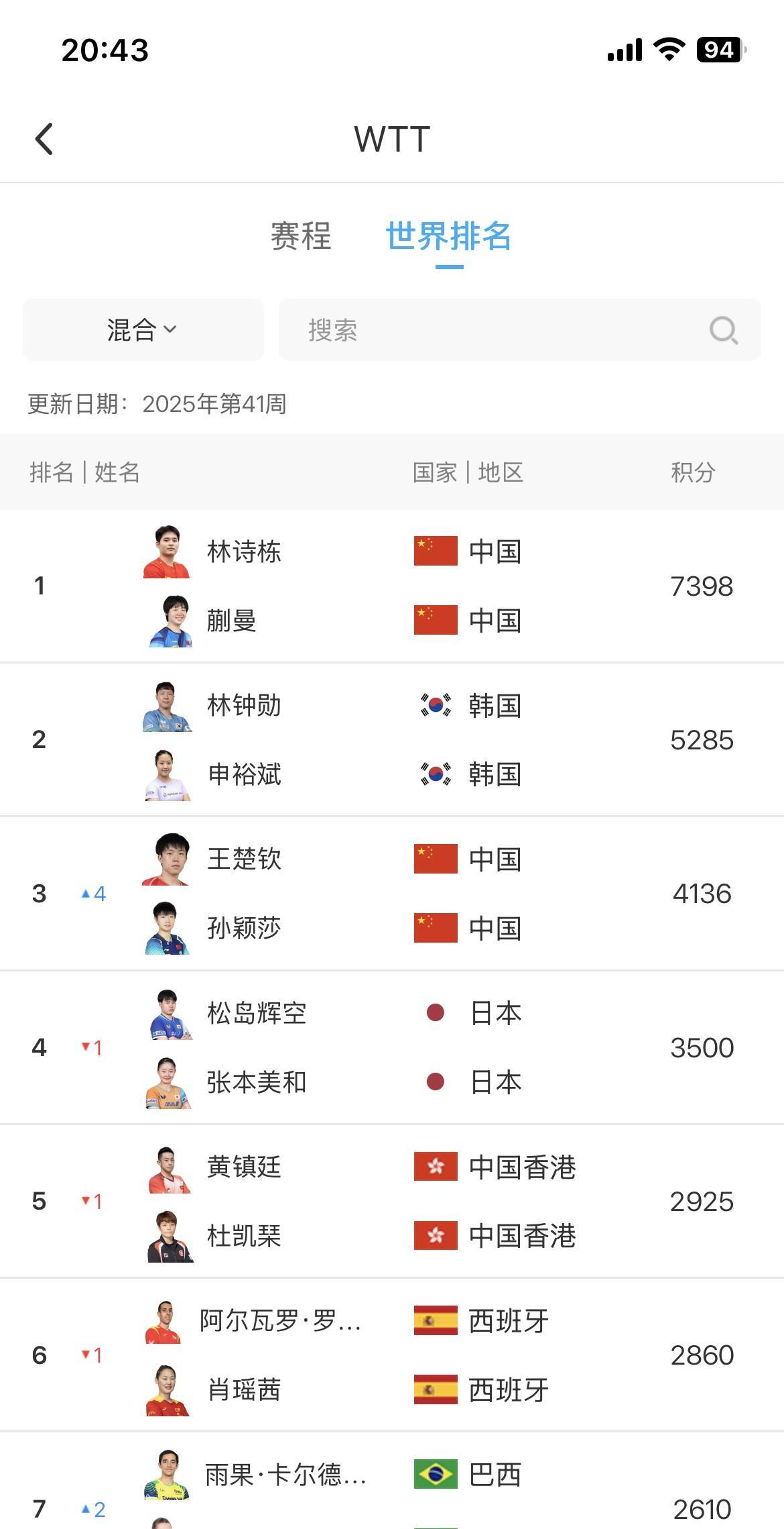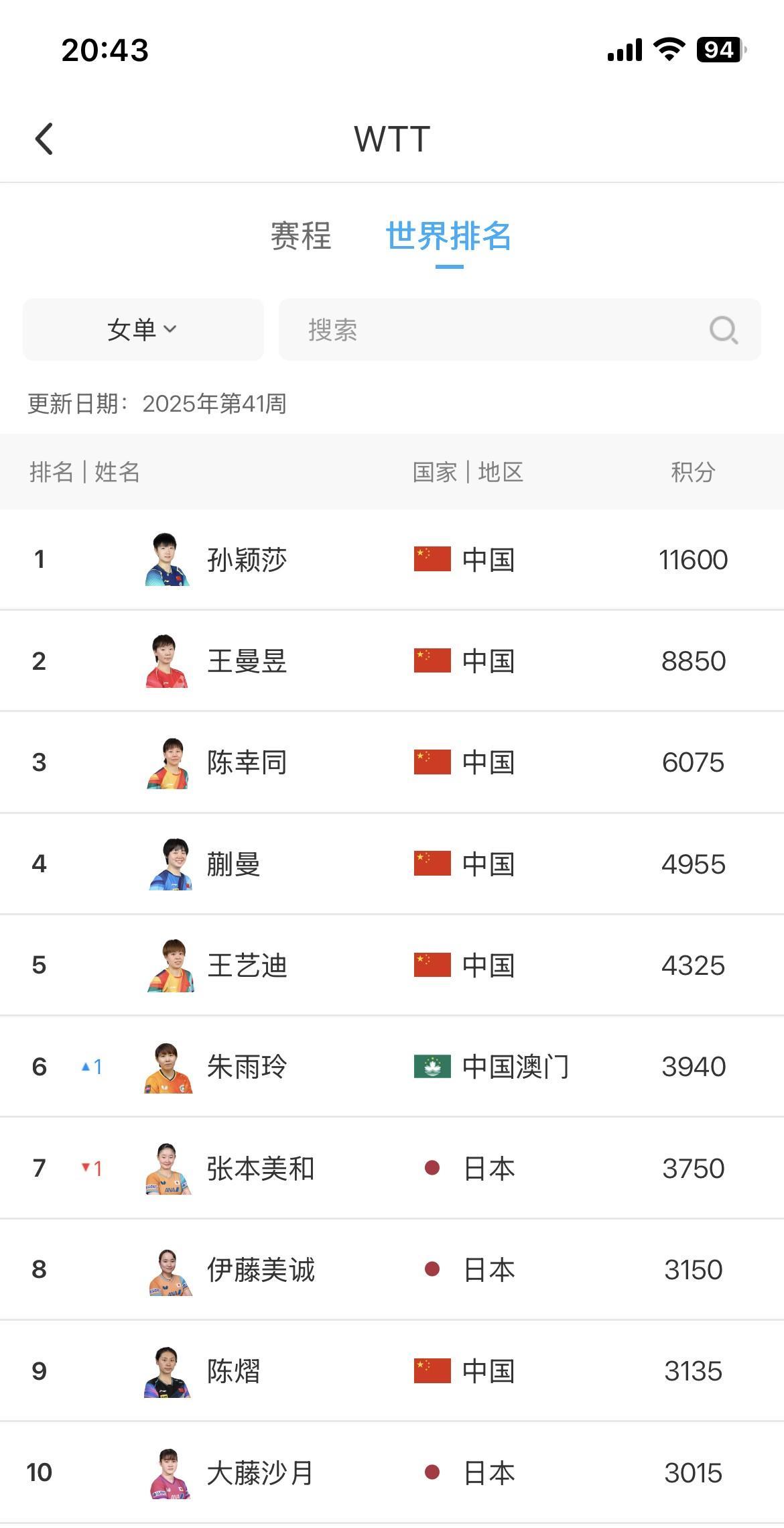万分king和万分queen 新的一周,wtt积分变化,莎莎依旧是万分女王,头哥也晋升万分,自此哥姐的世一都是万分了,太优秀了! 这几天没比赛,戒断一下,不过可能经常看哥姐的原因,打开某书都是哥姐。 还有啊,北满之后很多之前没看过的视频都出来了,尤其是茉莉方糕特别的清晰,保密协议到期了吗? #万能生活指南#