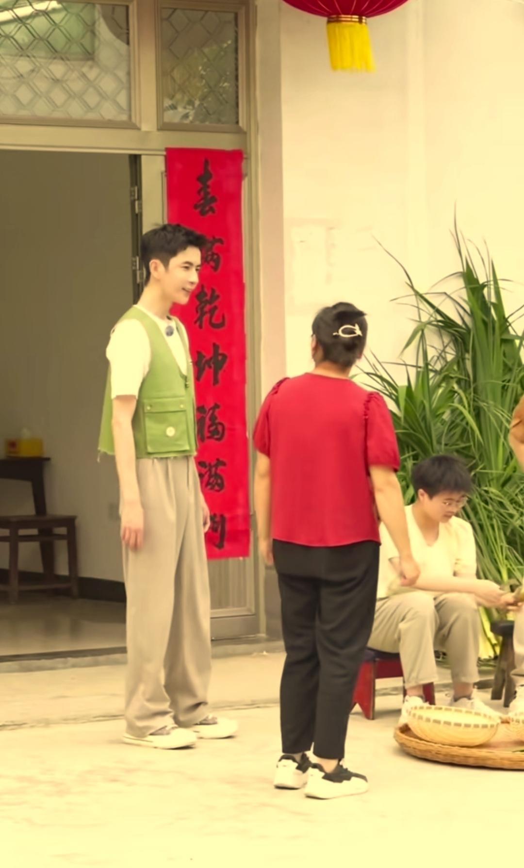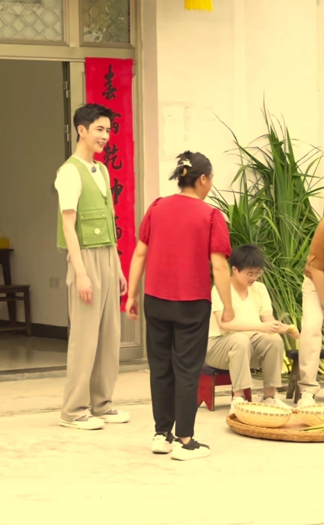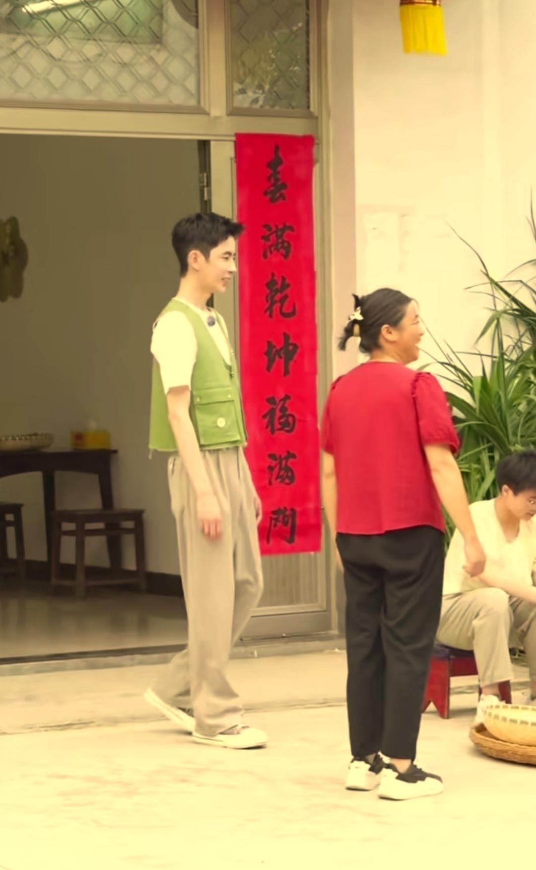 他当初在乡下支教和在安徽某乡下录制综艺…应该是他最放松最快乐的时光吧! 看他旁边这位穿大红色短袖的中年妇女很淳朴热情,笑脸满面,两个人又说又笑的,如果他只做个普通的大帅哥,现在应该早结婚生娃了,家庭幸福美满。 可惜没有如果……