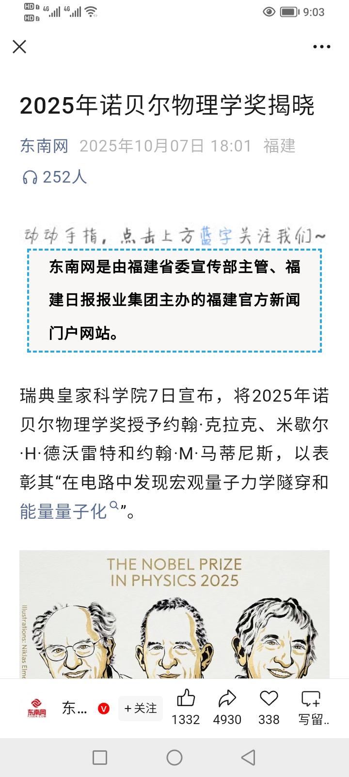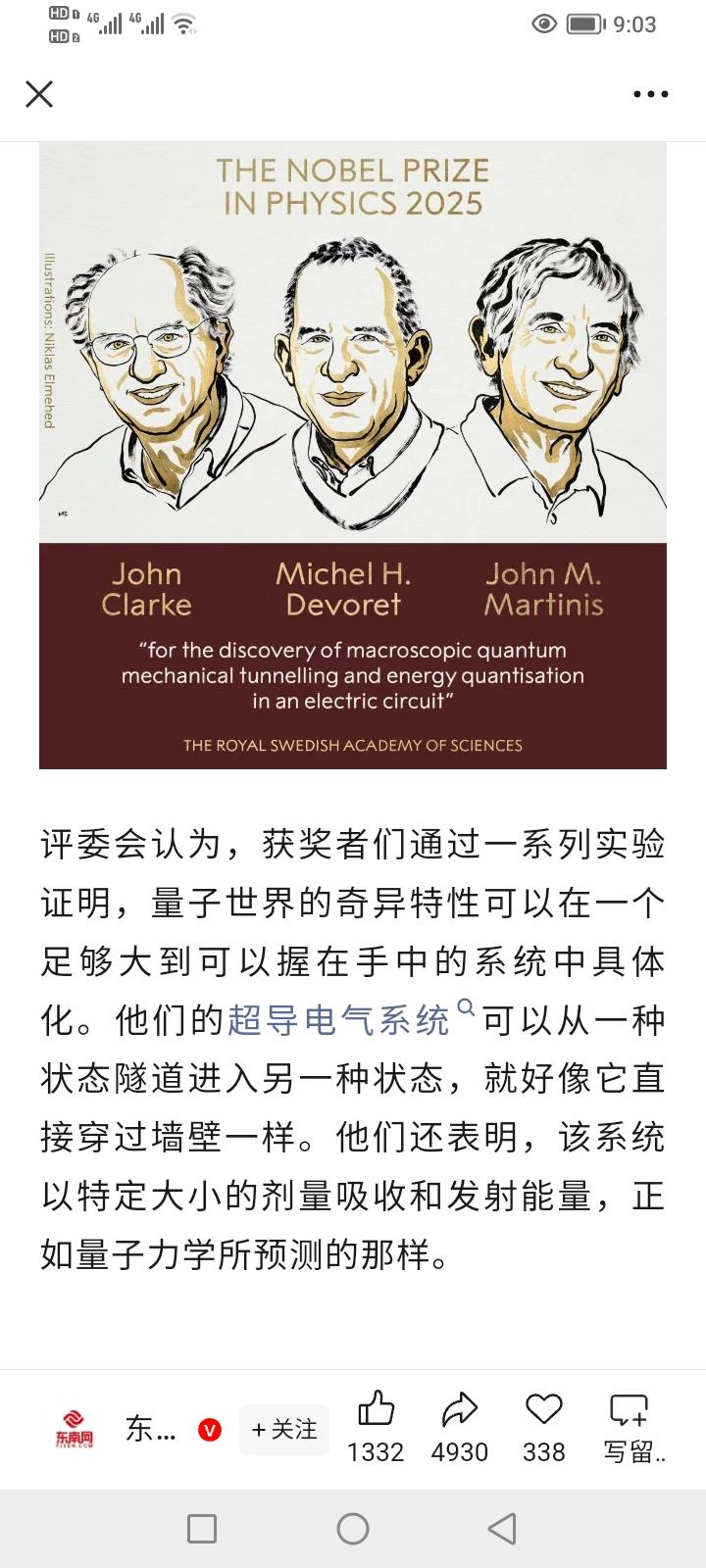 2025年10月7日,诺贝尔物理学奖揭晓。 他们是约翰.克拉克,米歇尔.H.德雷