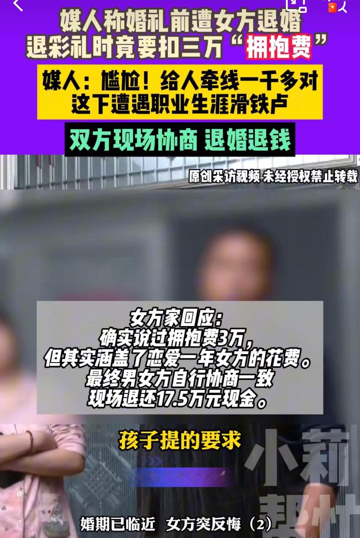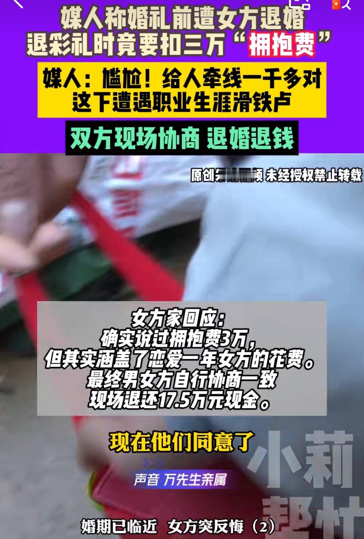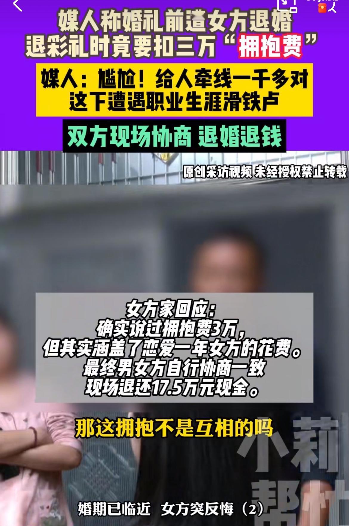 河南男女结婚不成退彩礼,20万扣掉3万拥抱费,史上最不要脸的收费诞生了。河南平顶山万某经媒人介绍,认识一个女子,经过短暂相处确定婚恋关系,2025年1月订婚,男方按照女方要求给了20万彩礼,外加4金。婚纱照拍了,婚宴酒店订了,女子却反悔了。理由是男方太老实,收入太低,不是她的菜。网友评论,这显然是找到更好的下家了。在退彩礼时,女方出现幺蛾子,称和男方拥抱了,需要扣除3万损失。这个男方的确挺老实的,交往几个月啥都没干,这要干了啥,估计这个彩礼是铁定要不回了,搞不好会步山西小伙的后尘。河南婚彩礼 彩礼陷阱 情侣彩礼 婚礼退钱怪象
