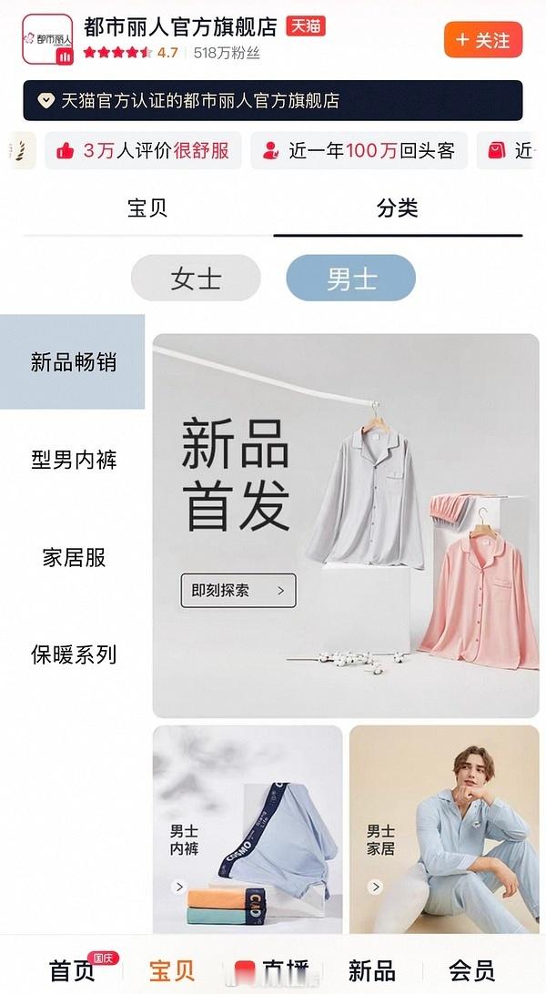 都市丽人也有男士家居服啊,不明白为什么要揪着这点儿不放,还要借机拷打拉踩侯明昊