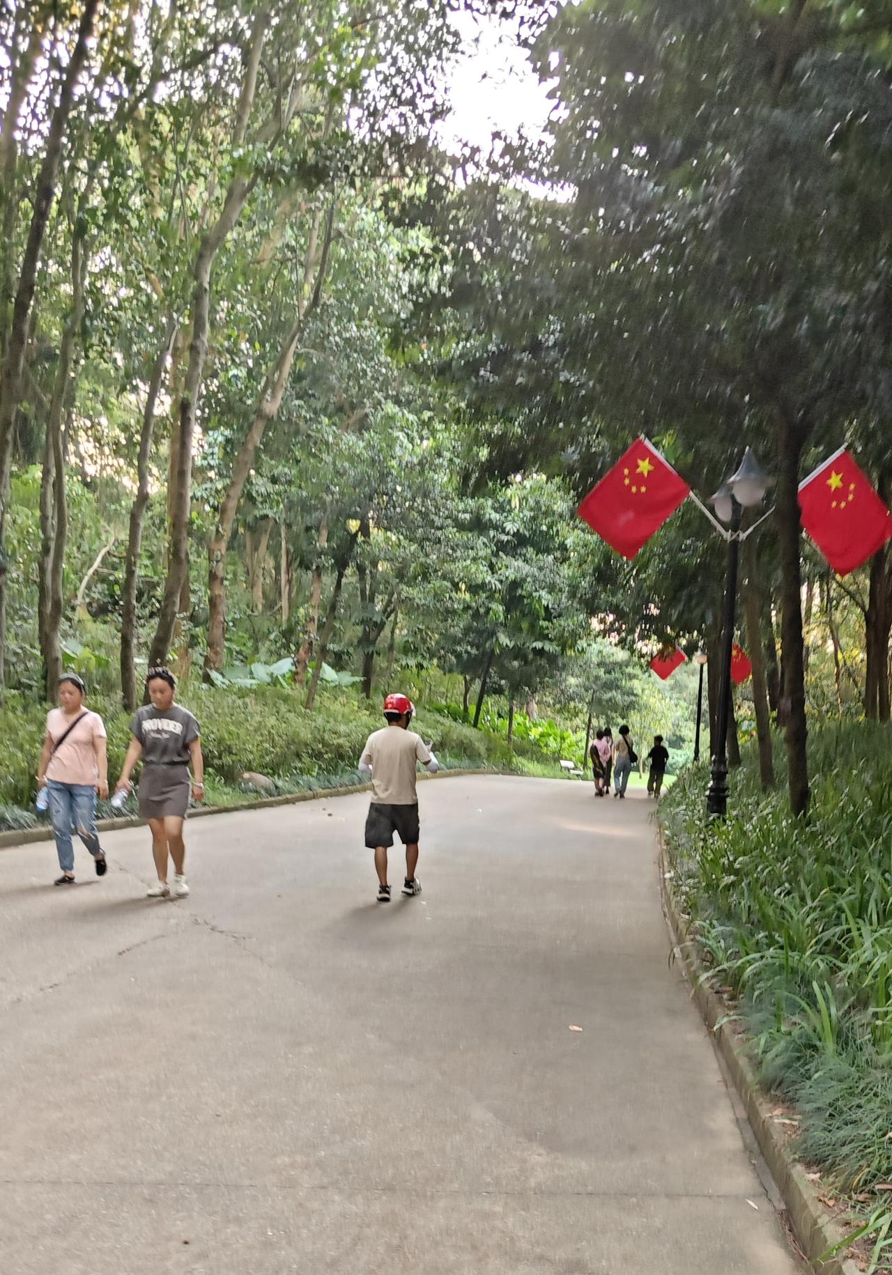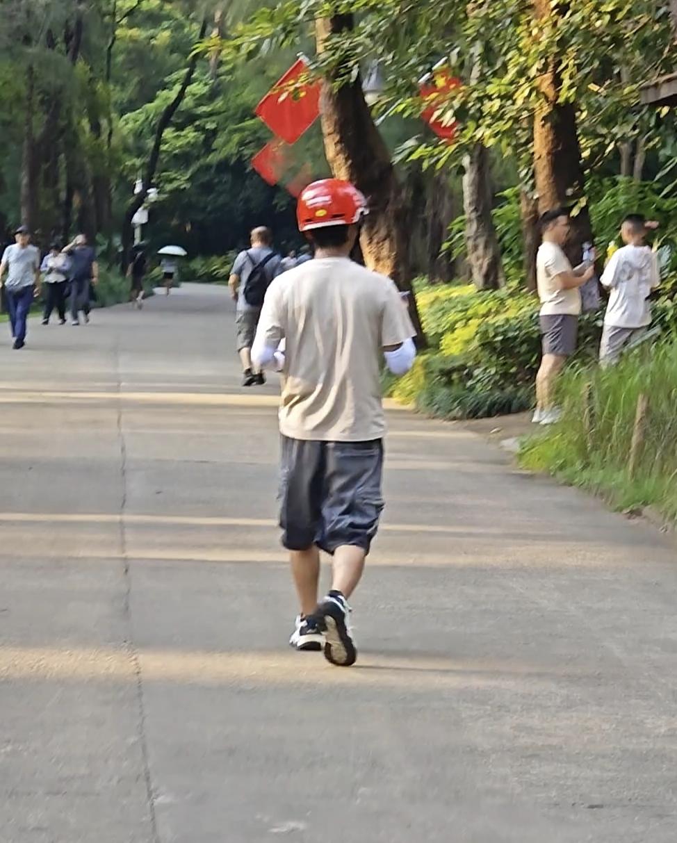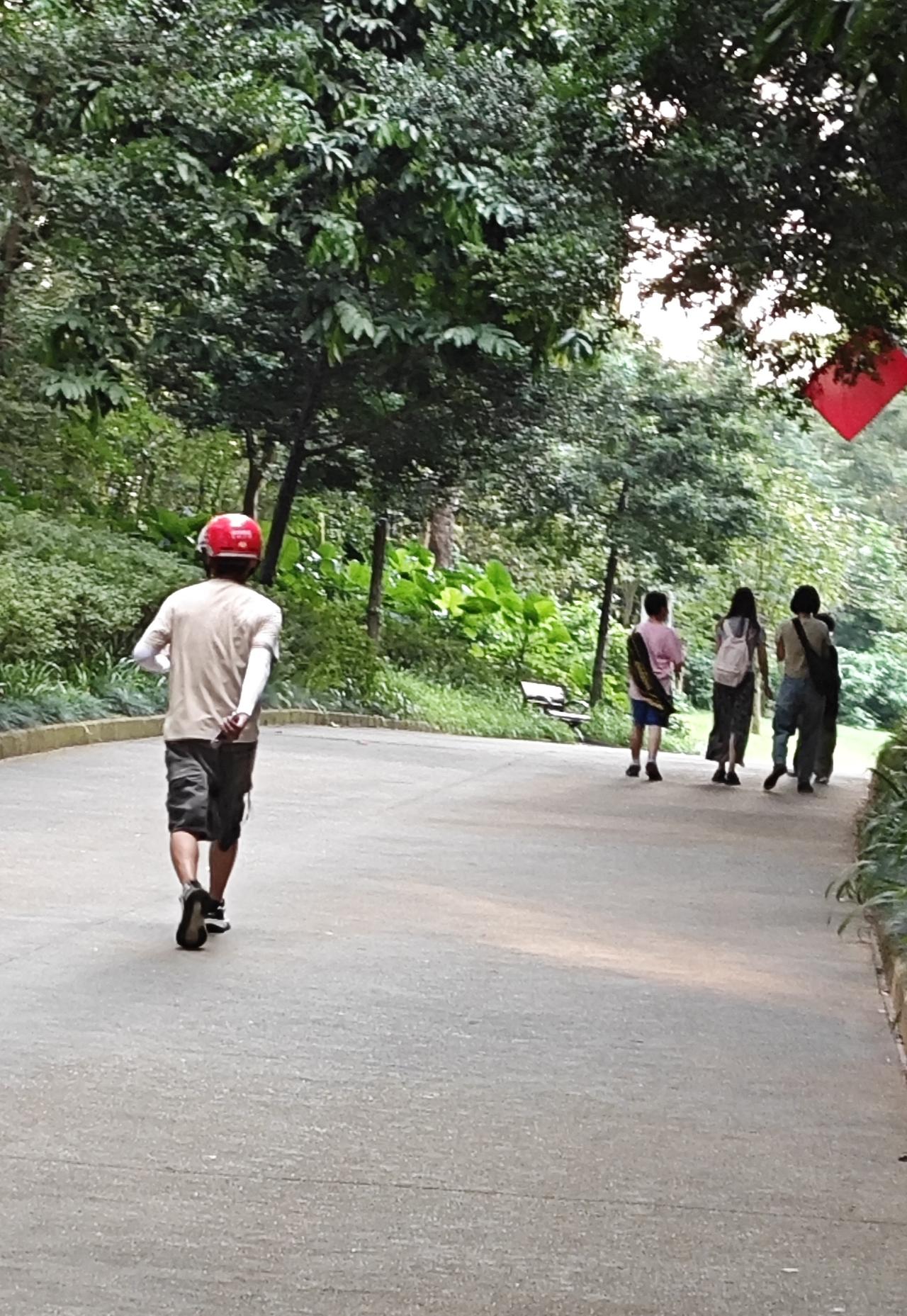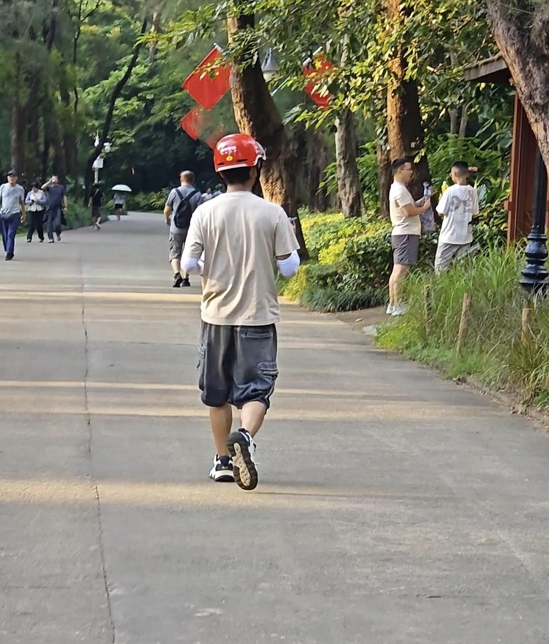 在公园深处点外卖,可把这位外卖小哥折腾的够呛。我之所以会关注这位外卖小哥,是因为我刚到公园门口时,他拎着一盒外卖(看上去就像一份炒饭或者面条)朝公园左边一条小道走去,我走到你公园入口近千米距离的时候,又碰到了这位外卖小哥,我估计他刚开始走错路了,根据点餐者的定位,他沿着公园这条道路一直向前狂奔。因为电动车不能进入公园,所以快速走或者跑步,是他唯一能选择的方式。他站在那里到处看,没有找到点餐人。我跟他有一两句交流,我说公园里面的人点外卖,这种单真的要慎接,太难找了,而且路太远了。其实我顺便也想说一句,希望点餐者能给外卖小哥一个打赏,这一单外卖送得太辛苦。当然肯定有人会说,你明知道是公园里面的外卖,你为什么要接,怕辛苦就不要送。对诸如此类看似有理但毫无人性的说法,我只能表示无言以对。