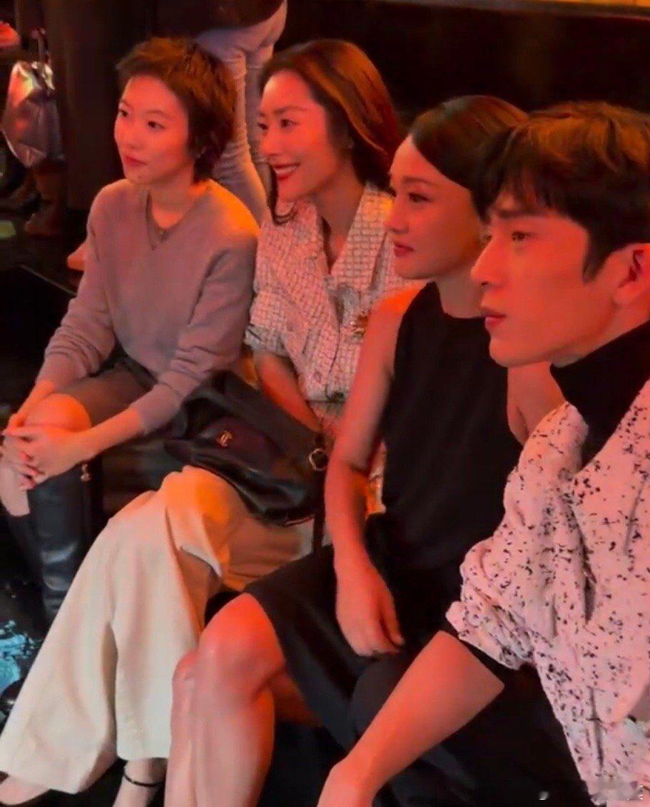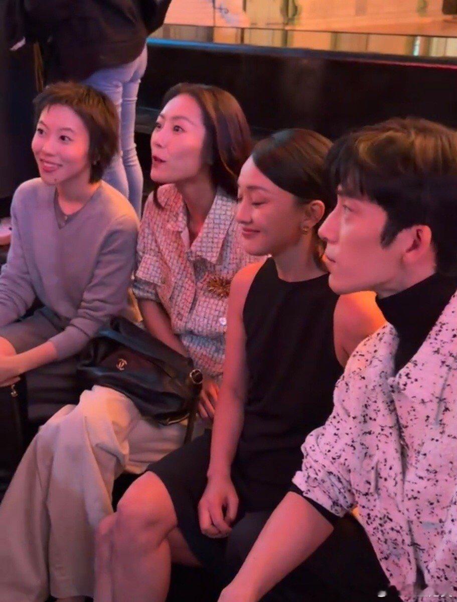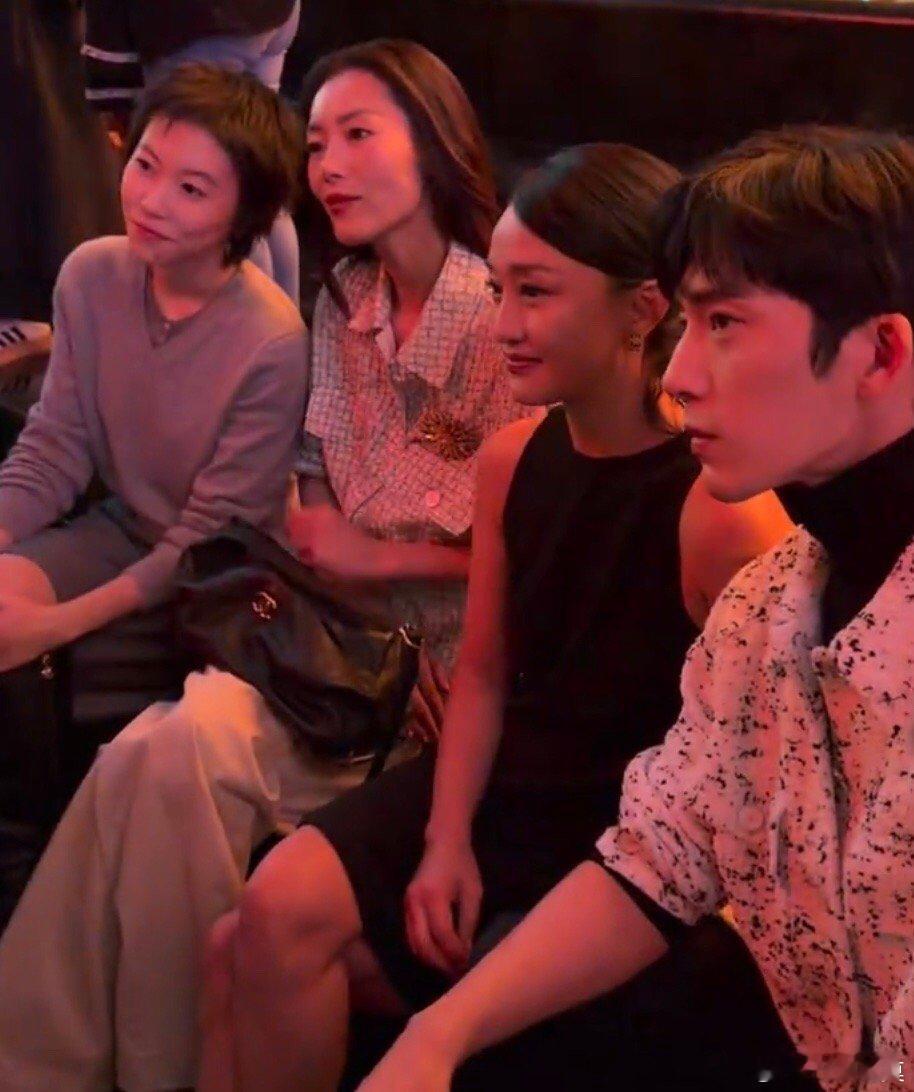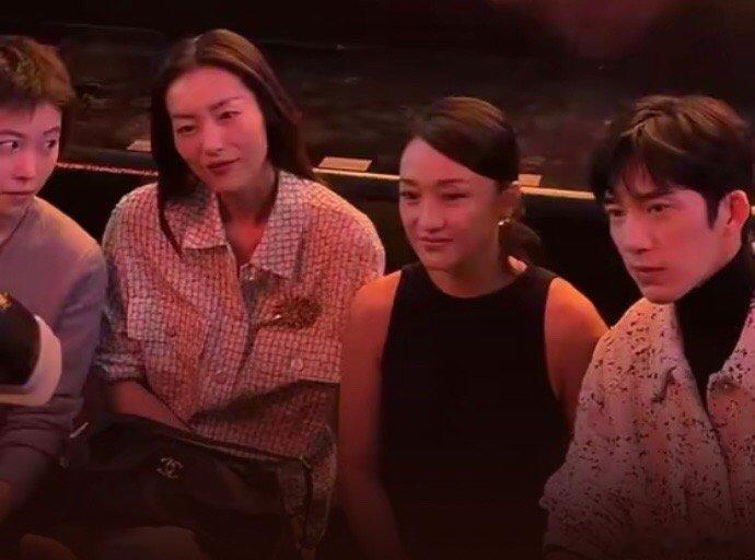 香奈儿秀场,窦靖童、刘雯、周迅、井柏然同框。周迅坐在了井柏然刘雯的中间。刘雯坐在了周迅、窦靖童的中间。 ​​​