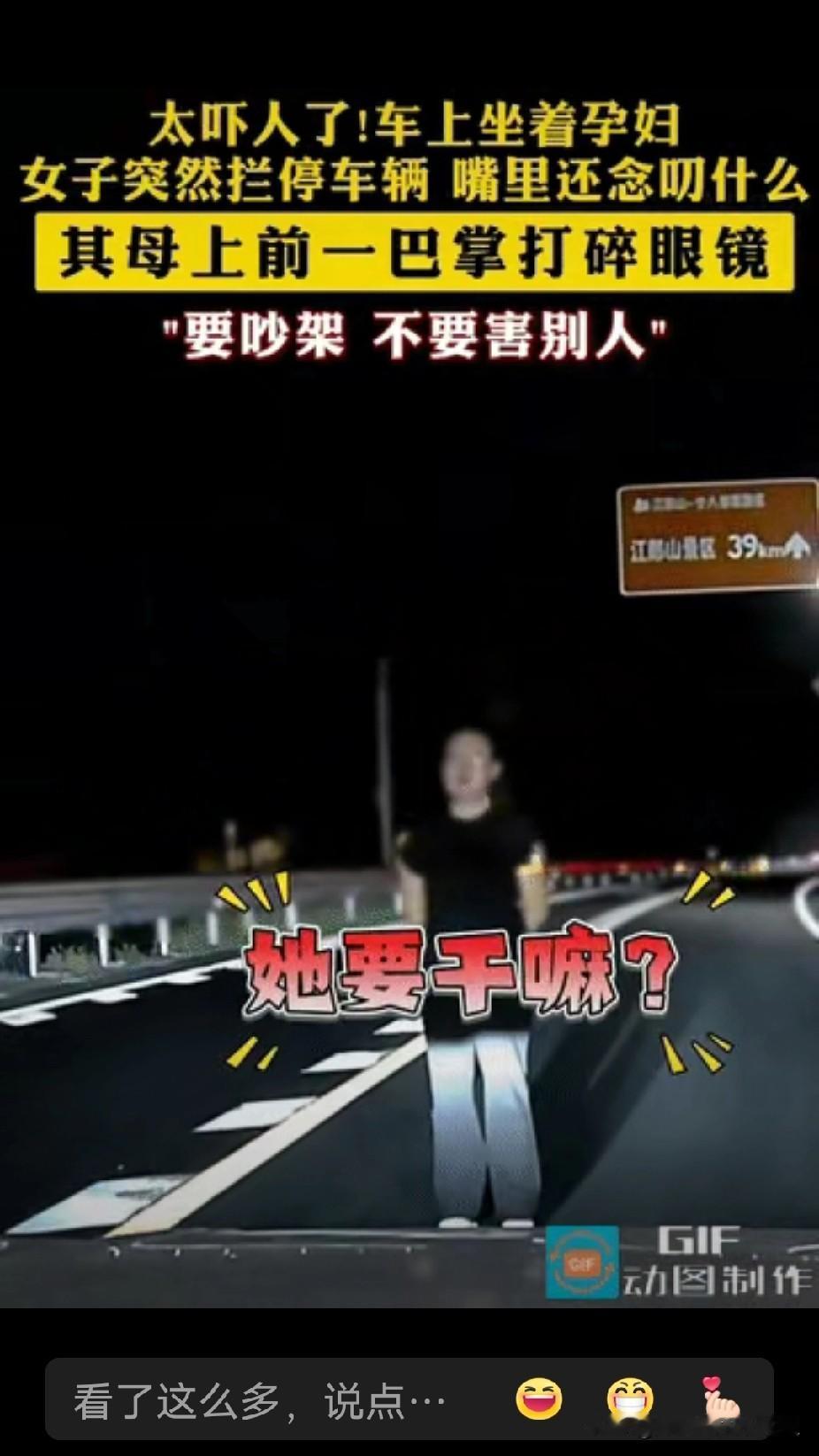 这一巴掌扇的好!浙江,大晚上一黑衣女子突然哭着跑到路中间,把正在行驶的车辆逼停。一男子拉都拉不住,其母上前就是一巴掌把眼镜都扇碎了,怒斥:要吵架,不要害别人!司机师傅:吓坏了,车上还有个孕妇! 事情发生在晚上,浙江开往江郎山景区的公路上。陈先生正开车载着怀孕的妻子回家,车速不快。突然一个穿黑衣、戴眼镜的女子从路边护栏窜出来,直挺挺站在路中央。陈先生猛踩刹车,车头在离女子一米左右的地方惊险停住。夫妻俩吓得魂飞魄散,尤其陈太太捂着肚子不停提醒“有人有人”。黑衣女子嘴里念念有词,表情痛苦,脚上穿的白鞋子在车灯照射下格外显眼。夫妻俩不敢下车,慢慢往后倒车,生怕遇到精神异常的人或者被讹诈。 女子的丈夫先出现,穿着拖鞋短裤,撩起袖子露出肚腩,生拉硬拽想把她拖离危险区域。黑衣女子像钉在原地一样倔强,一次次甩开丈夫的手,执意拦在车前。眼看拉扯僵持不下,一位大妈从路边走过来,她是拦车女子的母亲。这位母亲处理方式截然不同,没有废话也没有犹豫,抡圆胳膊一巴掌扇过去,眼镜应声飞落。女子被打懵了,终于停止反抗。两人拉着她退到人行道,马路交通逐渐恢复正常。 车里的陈先生后来回忆,当时最担心的是孕妇受惊吓。万一真的出事,可能就是一尸两命的悲剧。行车记录仪视频上传网络后,网友们都替他们捏把汗。有人直言母亲这一巴掌虽然暴力,但关键时刻救了女儿也避免了连环事故。要是拉拉扯扯继续拖延,后面车辆很可能追尾或者避让不及造成惨剧。 这起事件折射出公共安全与个人情绪的冲突。不管什么苦衷,选择在机动车道拦车本质上就是把无辜者卷入自己的情绪漩涡。陈太太那句话点透本质:“要吵架不要害别人!”公共道路不是私人情绪的宣泄场,那种“我痛苦所以全世界都要让路”的心态,本质上是对他人生命权的漠视。车上孕妇受到惊吓的后果谁能承担?如果真的发生碰撞,司机即使无责也要耗费大量时间精力处理事故。 母亲那一巴掌引发不同解读。有人觉得暴力教育不可取,但更多声音认为在危急关头需要这样的果断。与其温吞劝说导致车祸,不如用疼痛唤醒理智。老辈人常说的“打醒了”在这种场景下具有现实意义——疼痛让女子瞬间从情绪漩涡回到现实世界。这种干预方式虽然简单粗暴,确实阻止了可能发生的悲剧。 类似事件在浙江不是第一次出现。前两年杭州暴雨中有位粉衣女孩盛灵在马路中间拦车,她为救助昏迷倒地的男子。同样站在行车道上,动机却天差地别。一个是为救人而临时冒险,一个是为宣泄而威胁公共安全。嘉兴市公安局的谢雅萍两次深夜帮助迷路老人,黑裙子红裙子变换的是衣着,不变的是对生命的敬畏。这些正面案例反衬出黑衣女子行为的不负责任。 情绪管理不该成为奢侈品。成年人需要学会在崩溃时找到安全出口,而不是把公路当舞台。假如黑衣女子真的因家庭矛盾想轻生,更应该寻求专业心理援助或报警处理。用危险行为绑架他人注意力,即便暂时获得关注也解决不了根本问题。家人反应也值得玩味,丈夫拉扯无效凸显沟通失效,母亲暴力制止则暴露家庭应对危机的模式单一。 各位读者你们怎么看?欢迎在评论区讨论。