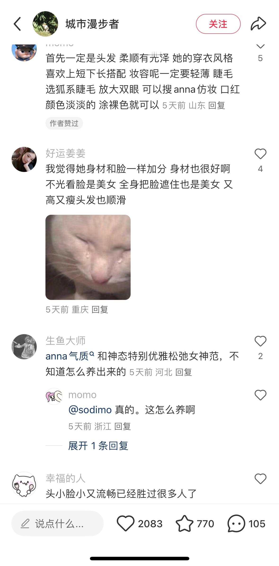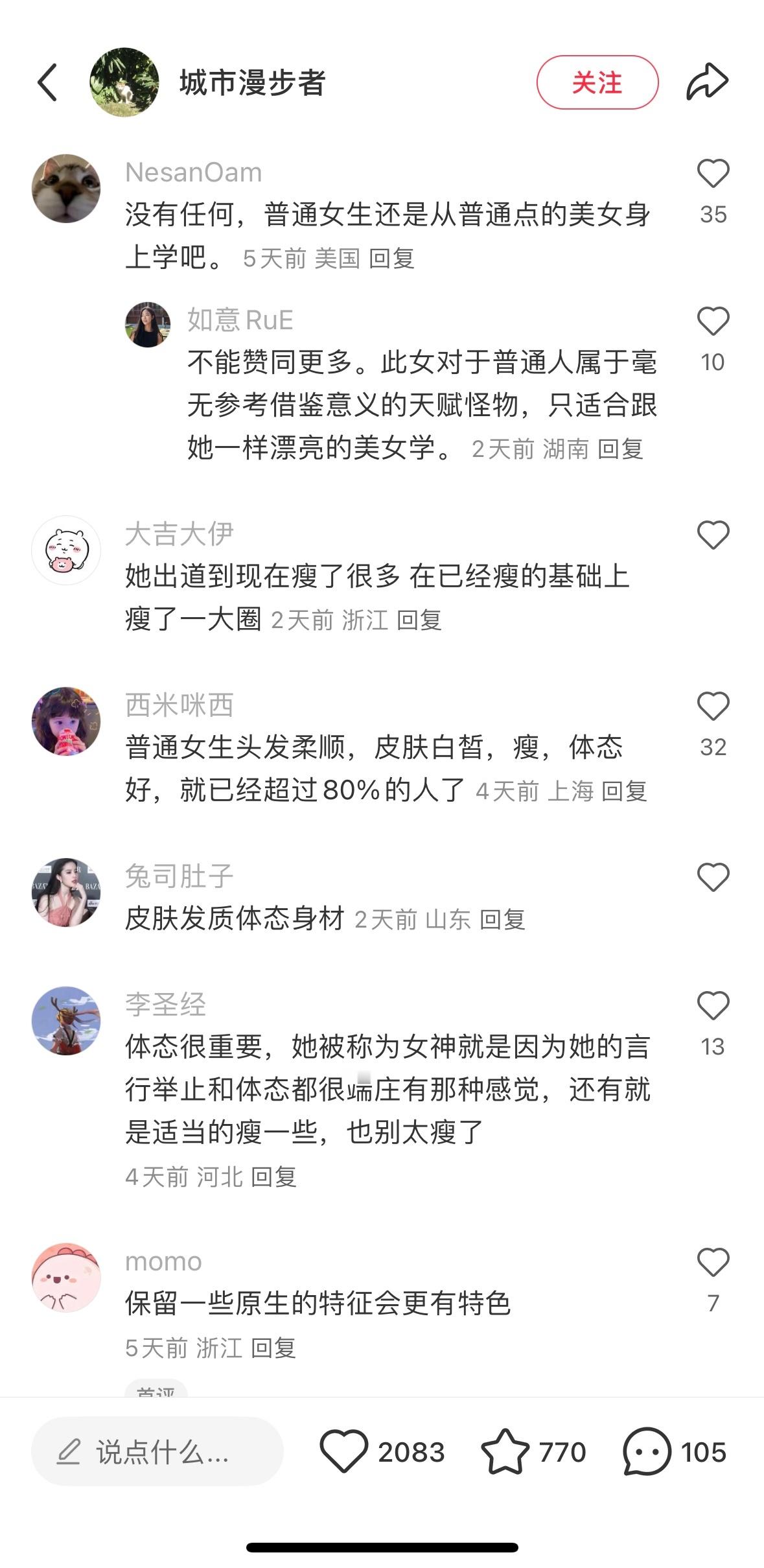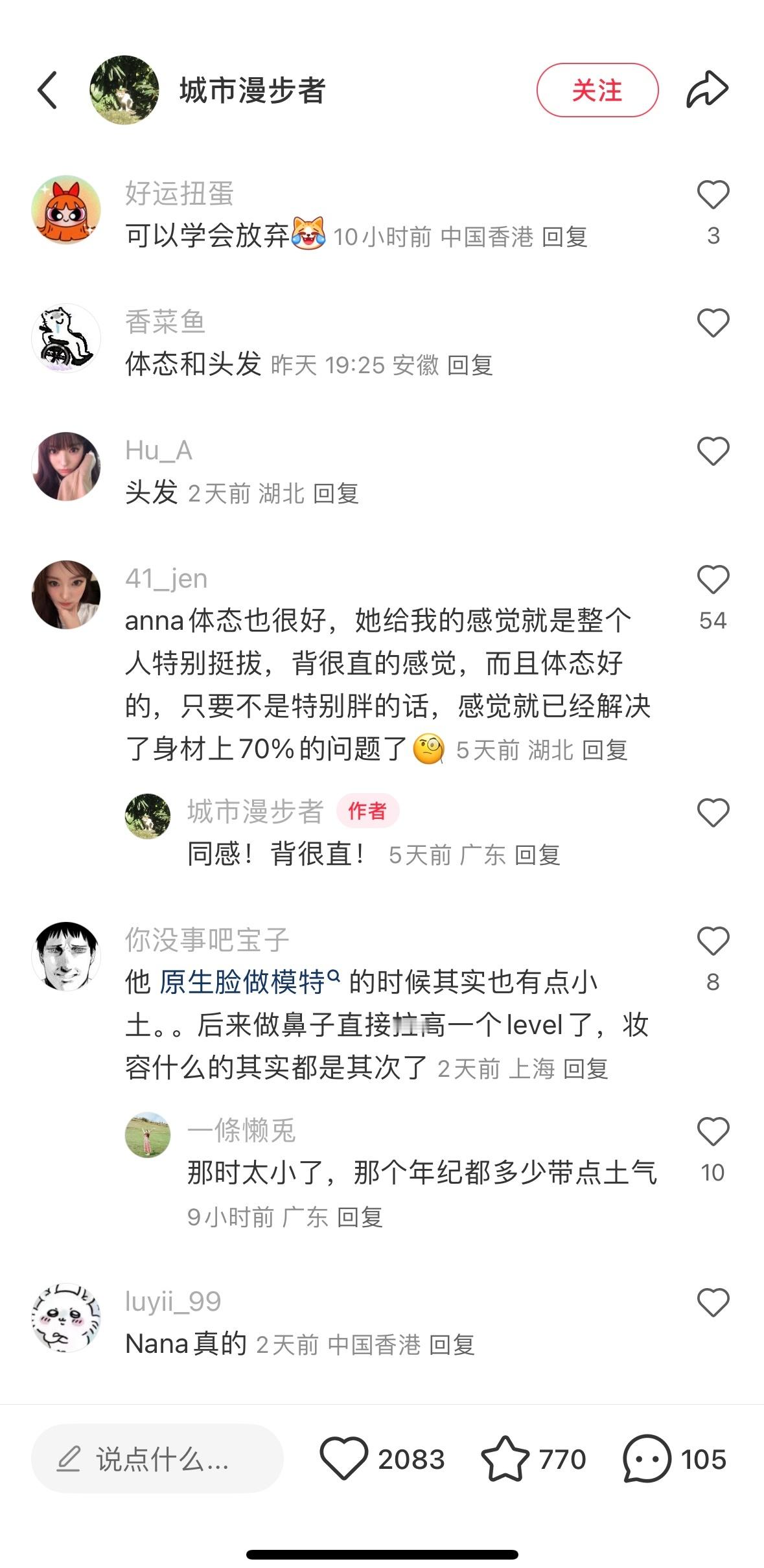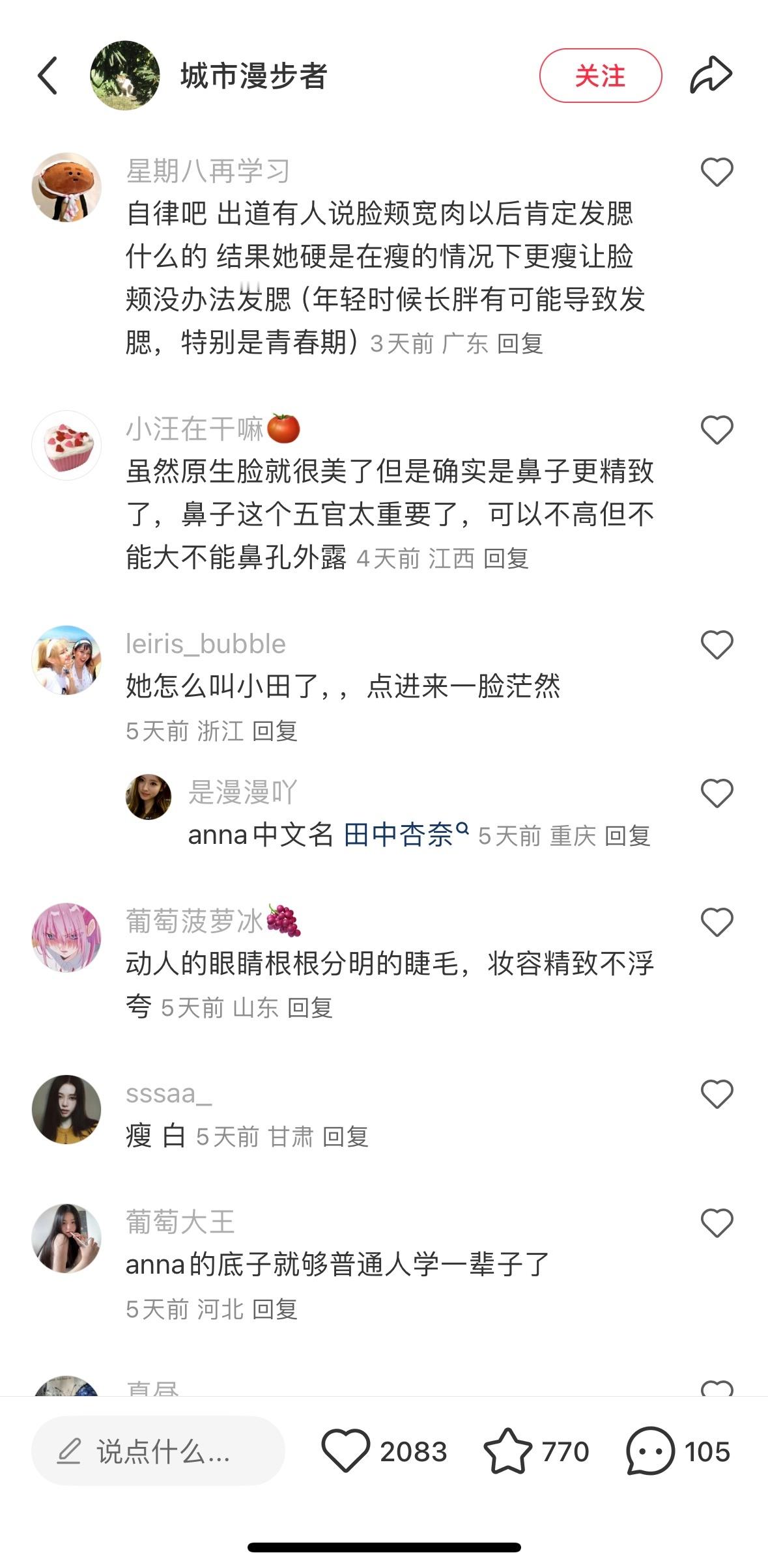 好奇点进去 全部评论拉下来感觉就那条“瘦”最靠谱 毕竟Anna当爱豆之前就是模特 是10岁就开始靠脸吃饭的人…..