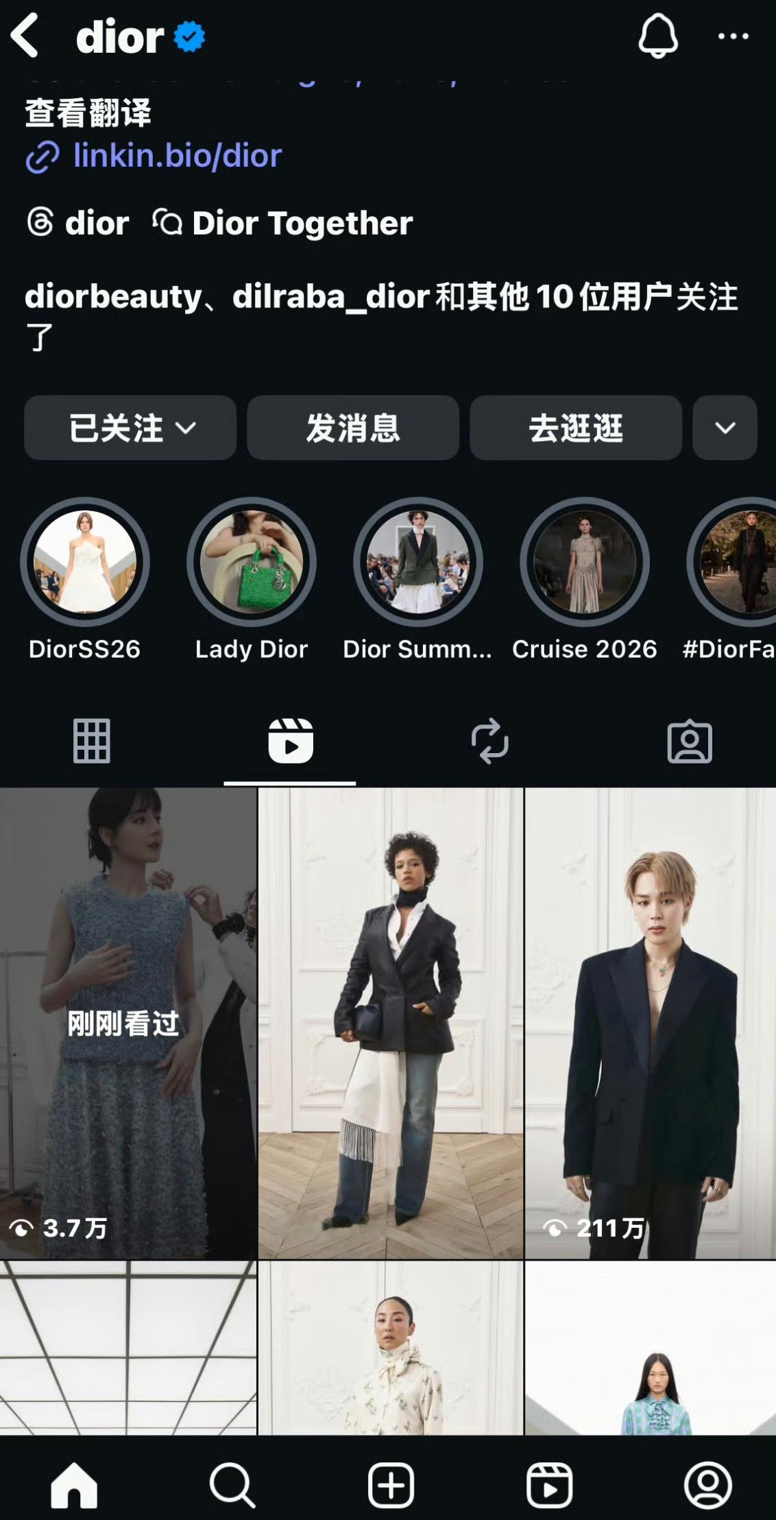 迪奥ins认领迪丽热巴单人fitting视频,目前有且仅有迪丽热巴。这个待遇国内