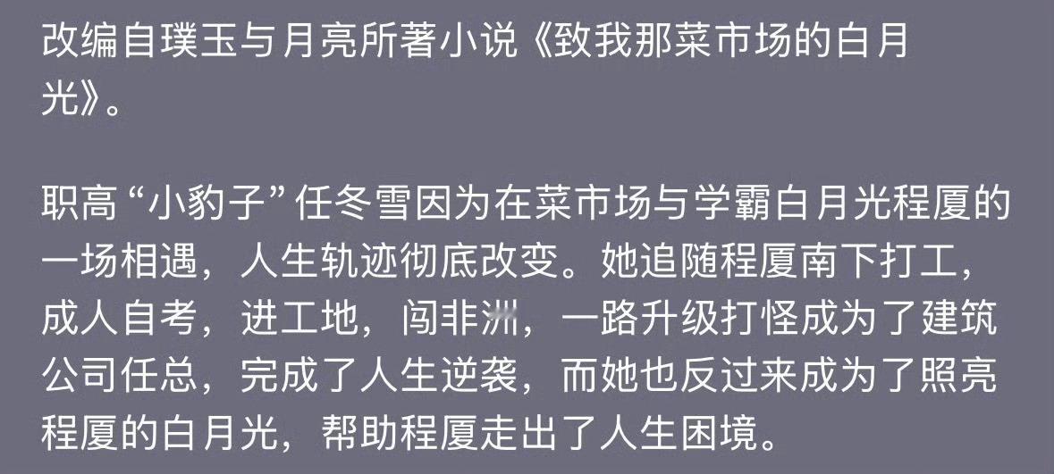《致我那菜市场的白月光》这个剧情怎么感觉在短剧看过呢~ 大女主爽文啊