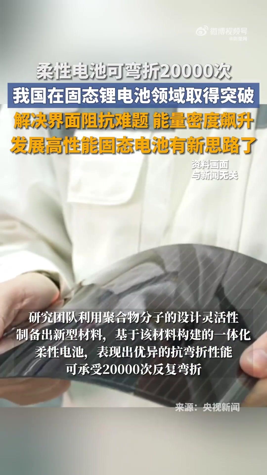 中国研究出可弯折20000次柔性电池 国产全固态电池固态电池评测 刷到中科院