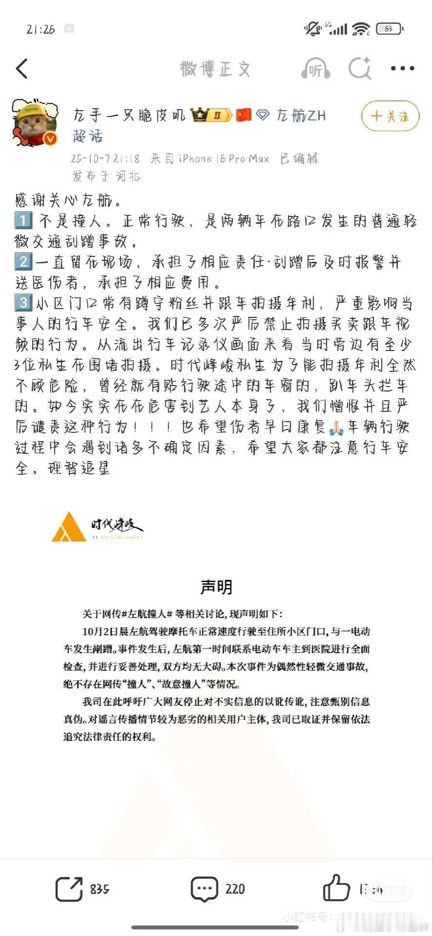 左航 剐蹭