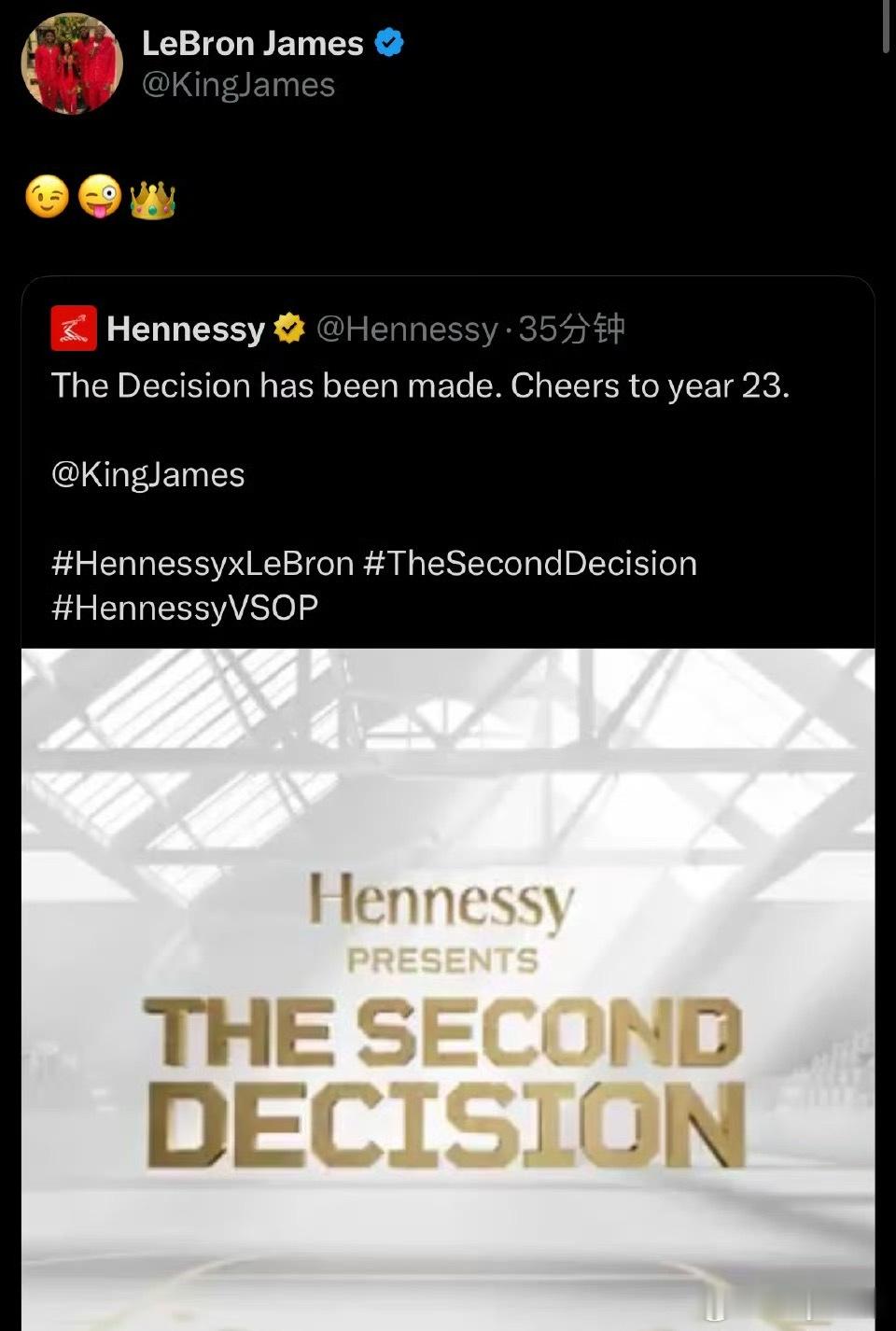 ???詹姆斯的决定是轩尼诗的广告????詹姆斯决定二广告