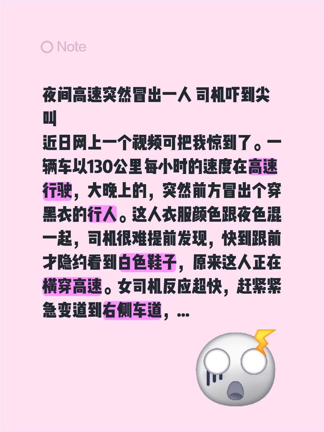 夜间高速突然冒出一人司机吓到尖叫 近日网上一个视频可把我惊到了。一辆车以130