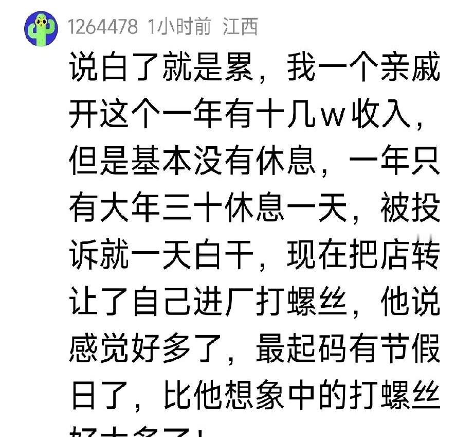 一天蹲起两千次,只赚250块 老赵的膝盖比天气预报还准,一到阴雨天就钻心地疼。 可他还是早上七点把卷帘门拉开,晚上十点才落锁,因为快递车不会等他。 五百个包裹,每个要站起来、蹲下去、再站起来、再蹲下去,一天两千次,像一台老旧的升降机。 公司把单件派费从五毛降到三毛,他不敢吭声,怕隔壁新开的智能柜把他的客户全吸走。 有人劝他关门,他说关了门,小区里的老人取快递就要多走两公里,他们腿脚还不如他。 老赵心里算过账,房租涨、人工涨,自己这把老骨头却越来越不值钱,可他还是把夜间灯换成更亮的LED,方便下班晚的打工妹找包裹。 疼的时候,他吃两片最便宜的止痛药,把腰贴撕下来再贴回去,一张能用三天。 我问他图啥,他指着墙上那面顾客送的锦旗说:被人需要,就是还能站着的理由。 机器可以代替弯腰,却代替不了这份惦记。 驿站小,却连着千家万户的方便,也连着老赵的尊严。 利润薄,可人心厚,老赵用两千次蹲起守住的不只是包裹,还有邻里间的温度。
