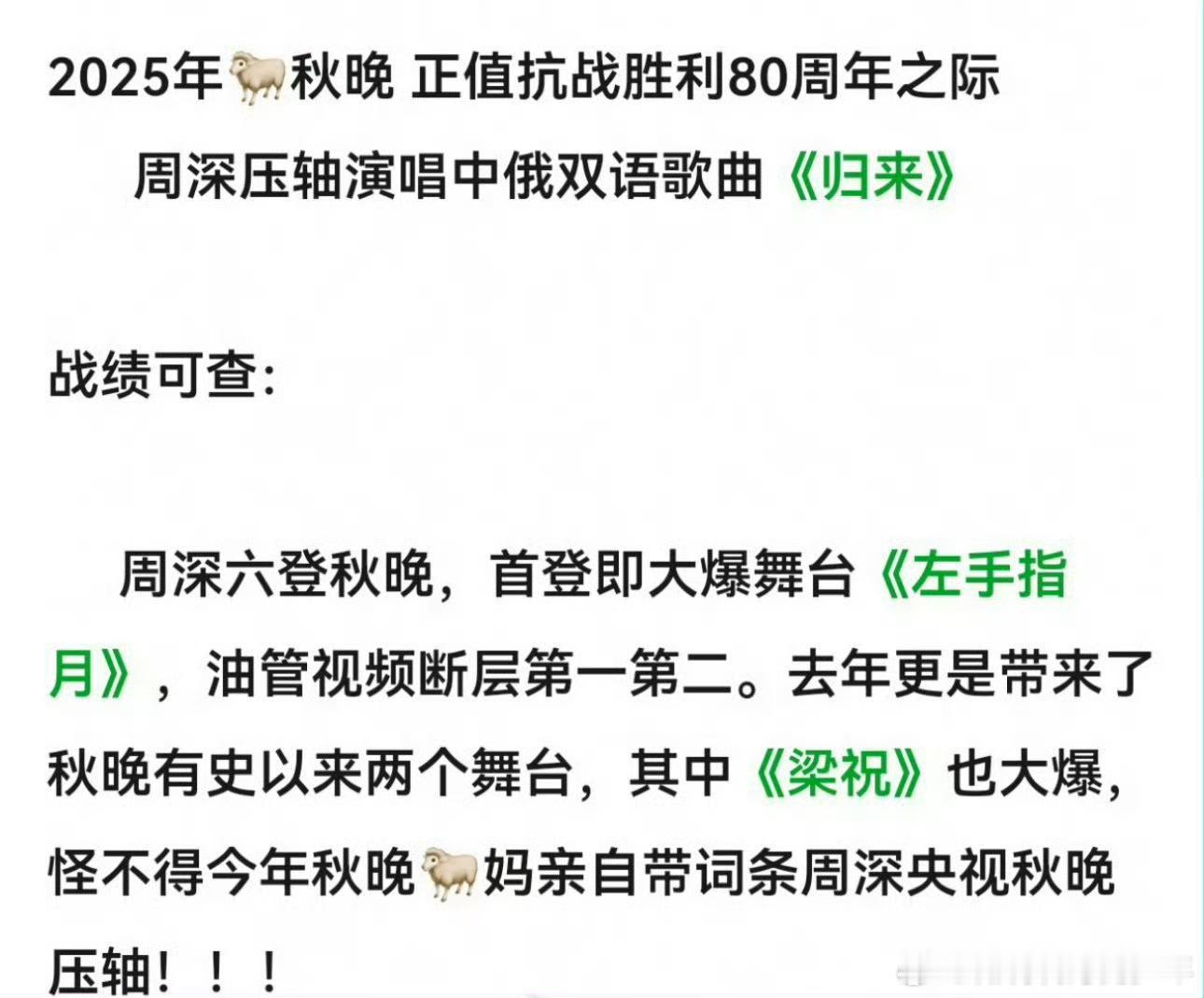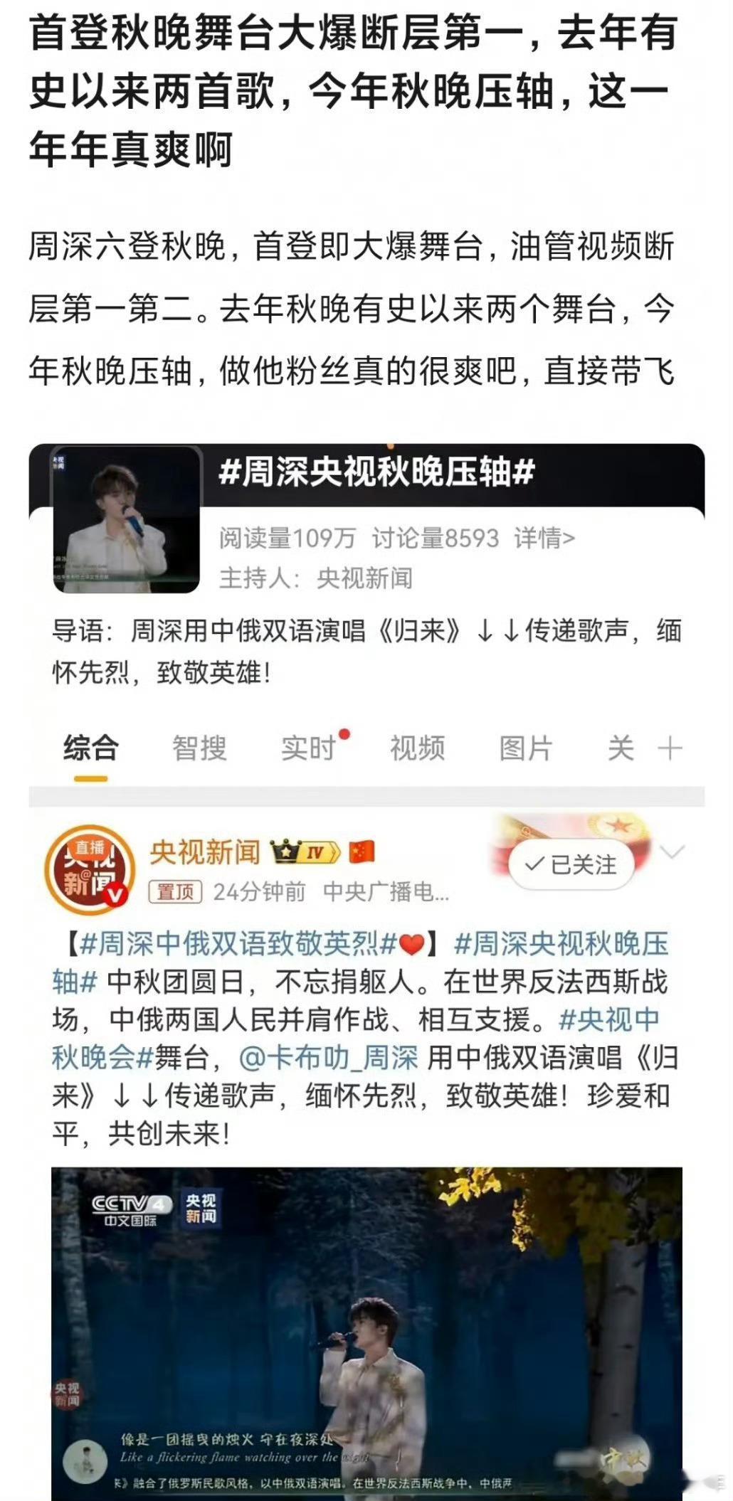 今年周深独唱的中俄双语《归来》还是央妈盖章认证的压轴舞台[赞][赞][赞][赞]
