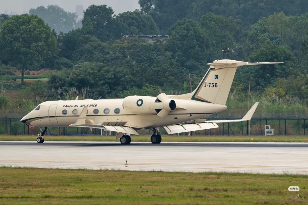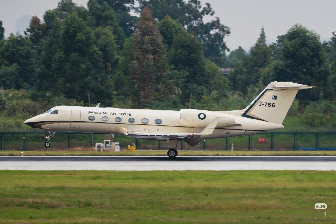 巴基斯坦空军“湾流”G450公务机今天飞抵成都: