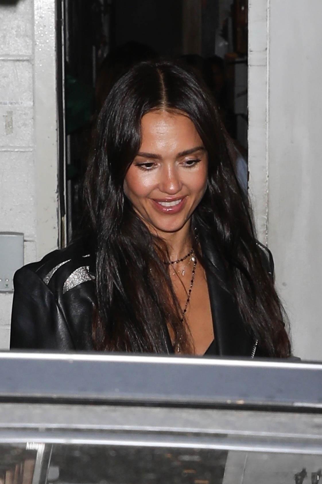 Jessicaalba杰西卡阿尔芭在贝弗利山庄外出,和朋友聚会到半夜后离开Wa