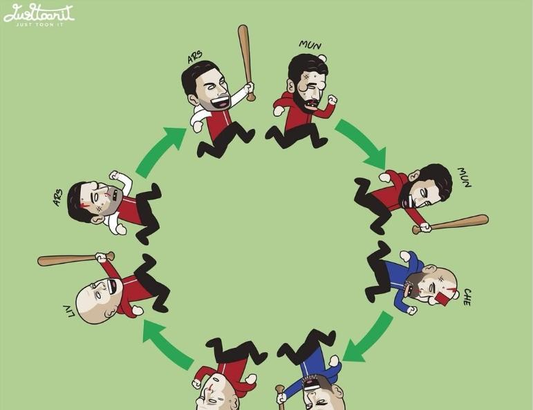 最近的巴萨和利物浦,都是豆腐渣防线,败了再败! 背身用屁股防守的范迪克又被玩坏了…… 外网梗图,趣味十足! 竞争世一左后卫的库库:还有谁? 原来又是一个循环……