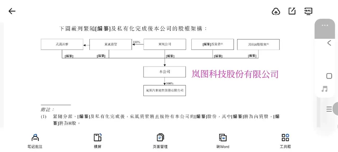 岚图招股书上的架构图——143页 圖一为:私有化完成前岚图公司的股權架構 图二为