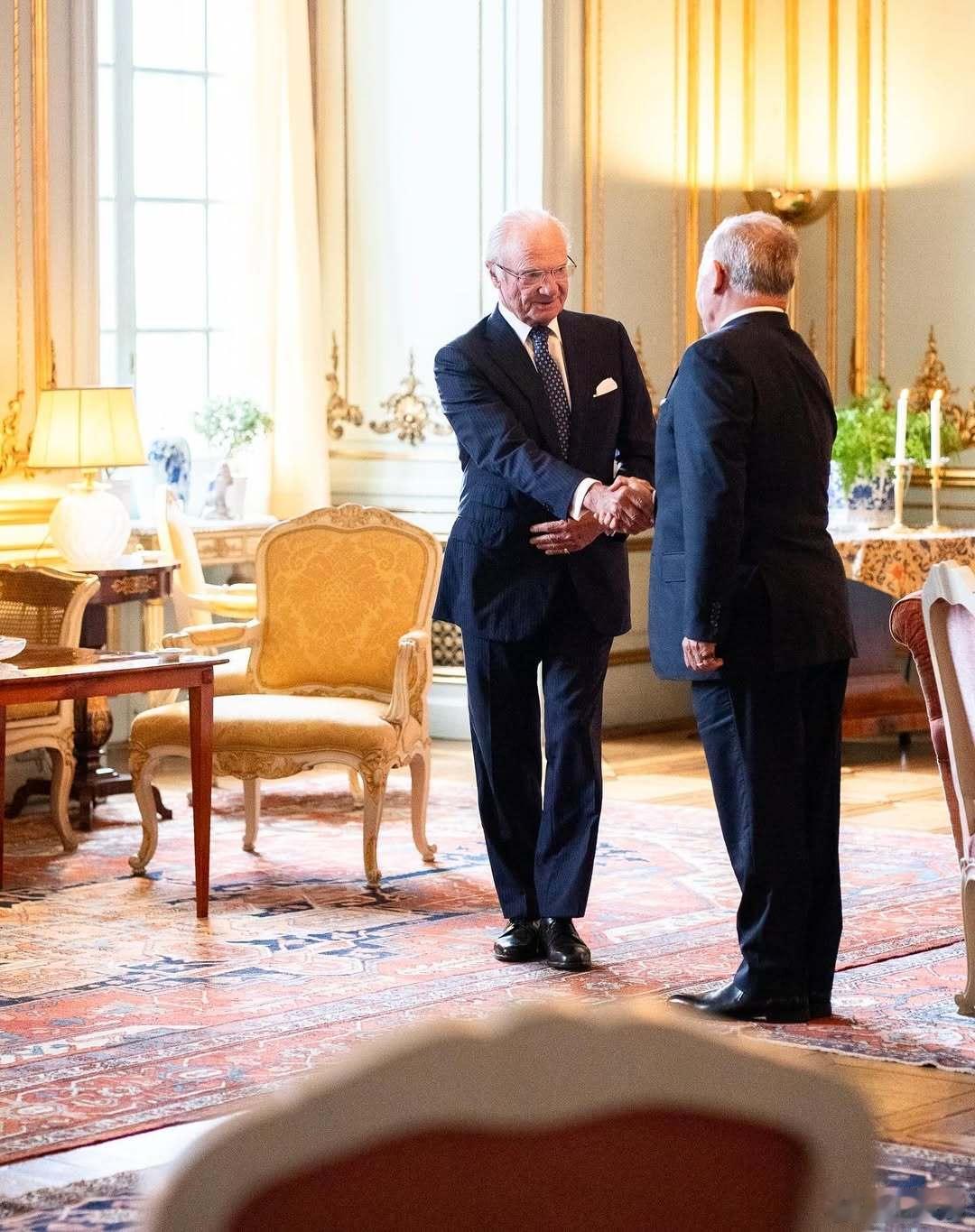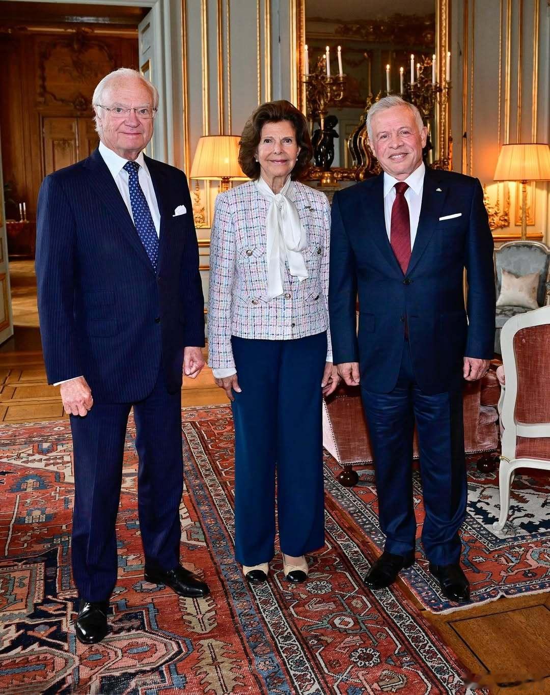 瑞典王室🇸🇪约旦王室🇯🇴10月7日,卡尔十六世·古斯塔夫国王和西尔维