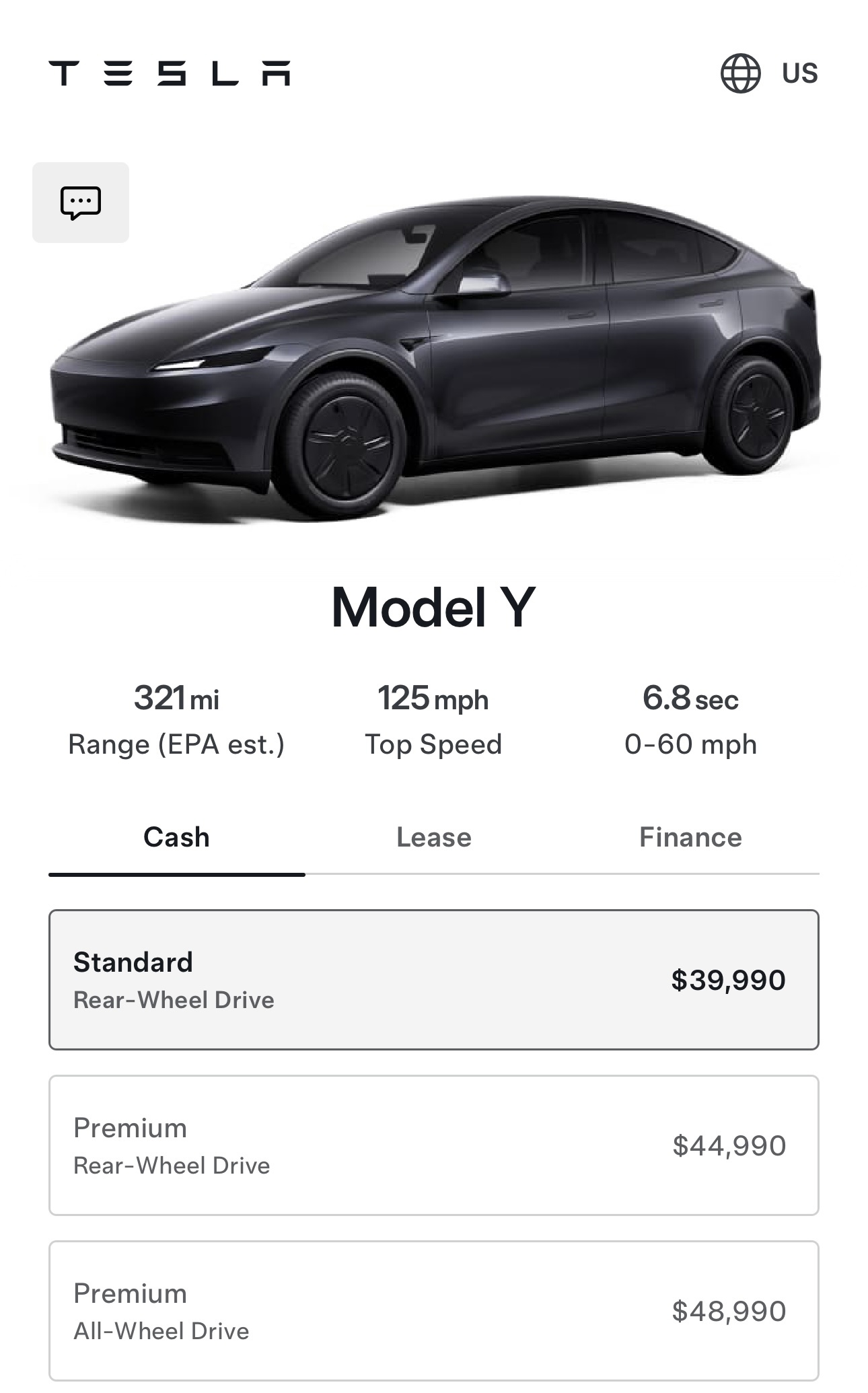 Model Y廉价版已经登录美国官网了,叫Standard,也就是标准版。一起来的还有Model 3 Standard。