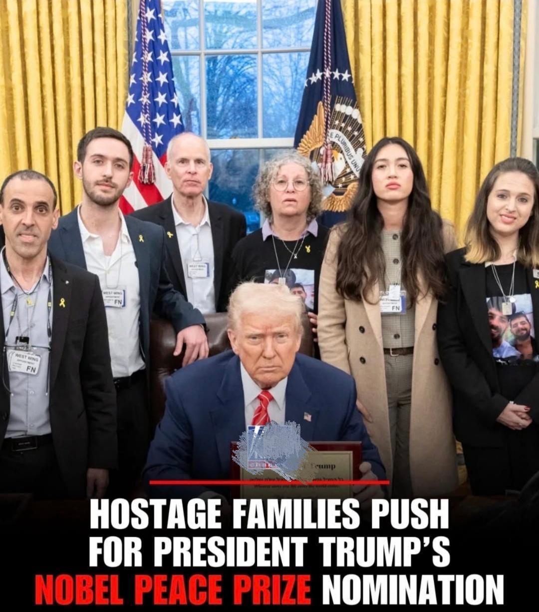 特朗普向诺贝尔和平奖做冲刺! 今天川普做诺贝尔奖最后冲刺。一批被解救的人质和家属被带到白宫与特朗普见面,并呼吁把诺贝尔和平奖颁給特朗普。