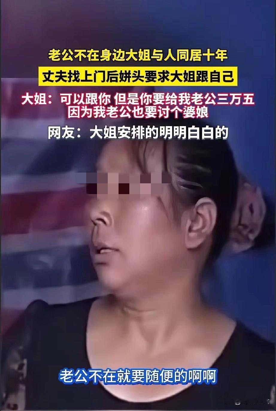 老公不在身边,大姐与人同居十年,丈夫找上门后,姘头要求大姐跟自己,大姐:可以跟你,但是你要给我老公3万5,因为我老公也要讨个婆娘,网友:大姐安排的明明白白的。 婚姻若成买卖,真情何处安放?十年错位关系,三万五了断因果。人心在利益与道义间摇摆,却不知命运早已为每个选择标好价码。 这事儿听着荒唐,细想却让人心里发凉。大姐这算盘打得真响,把自己明码标价三万五,还说是替前夫考虑。 她可能觉得这样挺公道——你得到人,他得到钱,谁都不亏。可婚姻什么时候变成能拿来讨价还价的商品了?十年同居,她对两个男人究竟有几分真心? 那位丈夫更让人唏嘘。找上门来却发现妻子早已和别人过成了夫妻,最后竟接受用钱来了结。 或许他早就心寒了,或许他觉得拿到这笔钱重新开始更实在。可感情债哪是三万五能结清的?这样的结局,三个人都成了输家。 最该被谴责的是那个姘头。插足别人婚姻十年,最后还想用钱买断关系。他把人都当什么了?把感情当什么了?这种用钱解决问题的思维,比背叛更可怕。 说到底,这场交易里没有赢家。大姐失去了尊严,丈夫失去了尊严,姘头也永远得不到真正的感情。 当婚姻变成市场,每个人都在估价,那真情实感该放在哪个位置?法律管得了婚姻关系,却管不住人心变质。 各位读者你们怎么看?欢迎在评论区讨论。
