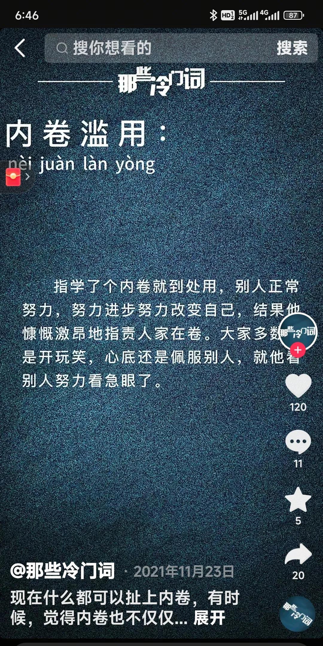 明明人生的自强不息,青春的自我追梦,中年的自力改命,却被说成“内卷”。 这就是, 西方外来词汇的思想殖民。 内卷,这就是给蒸蒸日上,心气正高,民族崛起的国家设置的陷阱词汇。 内卷,打击范围太大了,因为从物到事,从个人到集体到国家,一切可卷。 内卷比内耗这个词还没劲儿。 内卷,不是自己不行了,不好了,不强了,让你从自身找原因。 内卷暗示你,你的不行不好不强,归罪于别人逼你,集体逼你,国家逼你! 内卷,让人与人有嫌隙。 原生家庭,让儿女与父母有隔阂。 还有不少类似在网上大行其道,莫名其妙火起来的词汇。 这些,就是外来词汇思想殖民的套路,混乱人心,扰乱社会稳定。 古汉语中,类似内卷的词汇,基本没有给平民老百姓用的,你们懂我的意思吗? 内讧,用在非正义朋党,衰败集团,因自私自利引起的互相构陷,攻击。 内噬,基本就是正统集团同室操戈,自相残杀。 内搏,使用范围相对中性。 比如“骨肉内搏,而国随之以亡。”这句,是我推崇的王夫之说过的话。 少讨论内卷,你当然就自强了。